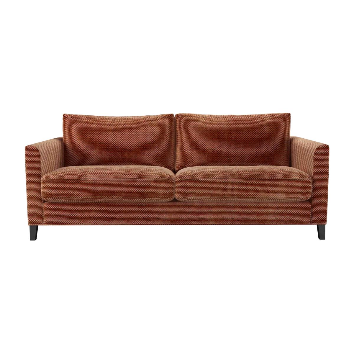 I love this three-seater because of its plush, bubble velvet finish, which adds a rich texture and a pop of colour to any room. It works particularly well in eclectic, contemporary, or vintage-inspired interiors, where its bold character can be a focal point. The fact that it breaks down is practical for flexibility and ease of moving-great for smaller spaces or reconfiguring layouts. To style it effectively, pair it with neutral or patterned cushions to create visual interest, and consider layering with textured throws for added comfort. Because of its vibrant pomegranate hue, it’s best placed in a room with complementary or muted tones to let the sofa stand out without overwhelming the space.