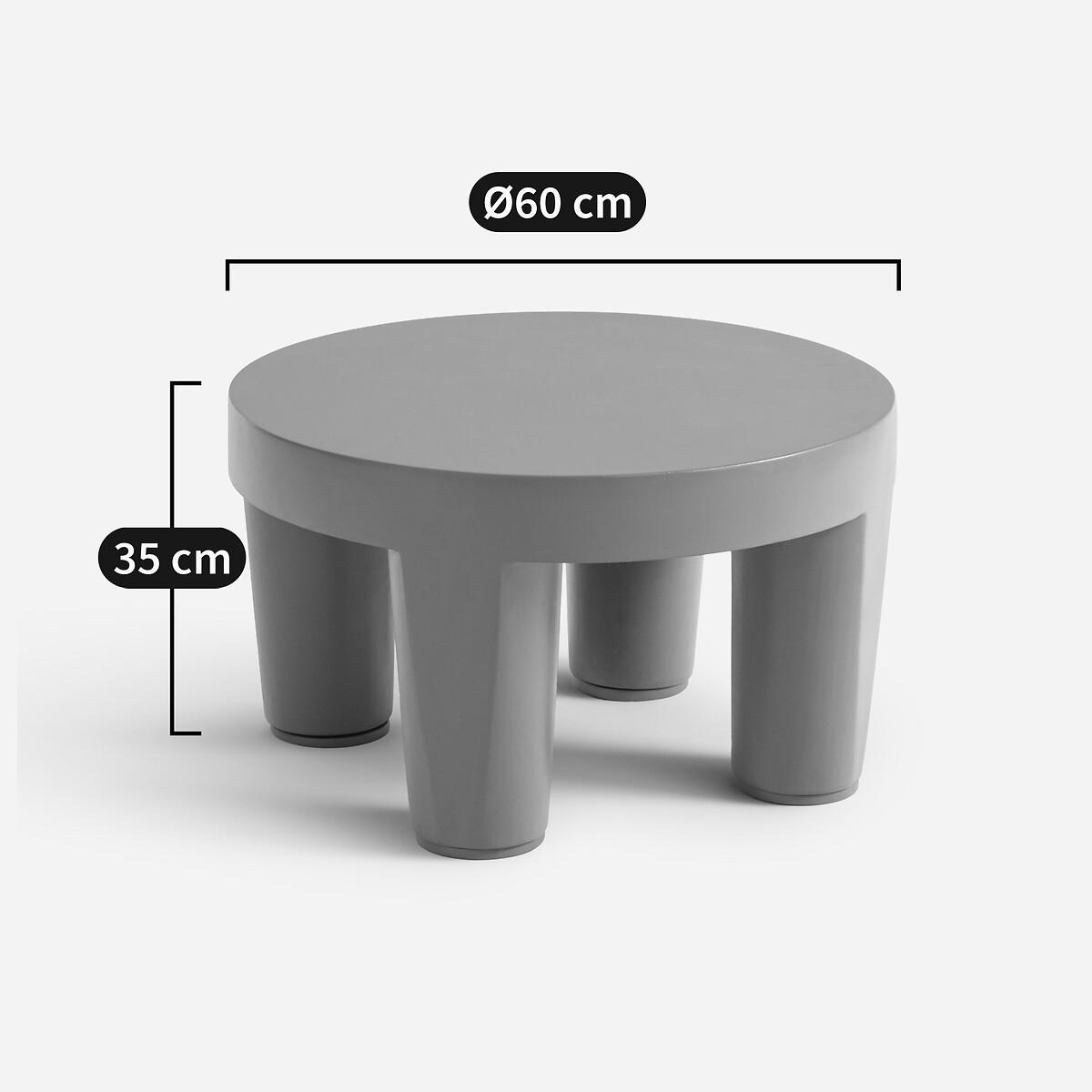 The Jableh coffee table, designed for the great outdoors, combines a pared down design, featuring four legs. Versatile, for indoors or outdoors, its ideal height works perfectly with low sofas and armchairs. Made from polystone, a fibreglass material that imitates cement, it combines aesthetics with lightness. Product Details • Made in polystone, the colour is dyed in the mass • Hand moulded: Each piece is unique. Quality Info • Polystone is composed of fibreglass, epoxy resin and mineral powders. Polystone makes for robust, rot-proof and weather-resistant outdoor furniture. This material is also lighter than cement. The smooth surface makes cleaning easy. Dimensions • Diameter: 60cm • Height: 35cm • Weight: 16kg • Sold pre-assembled. Dimensions and weight of parcel1 parcel • L67 x H42 x D67cm, 19kg