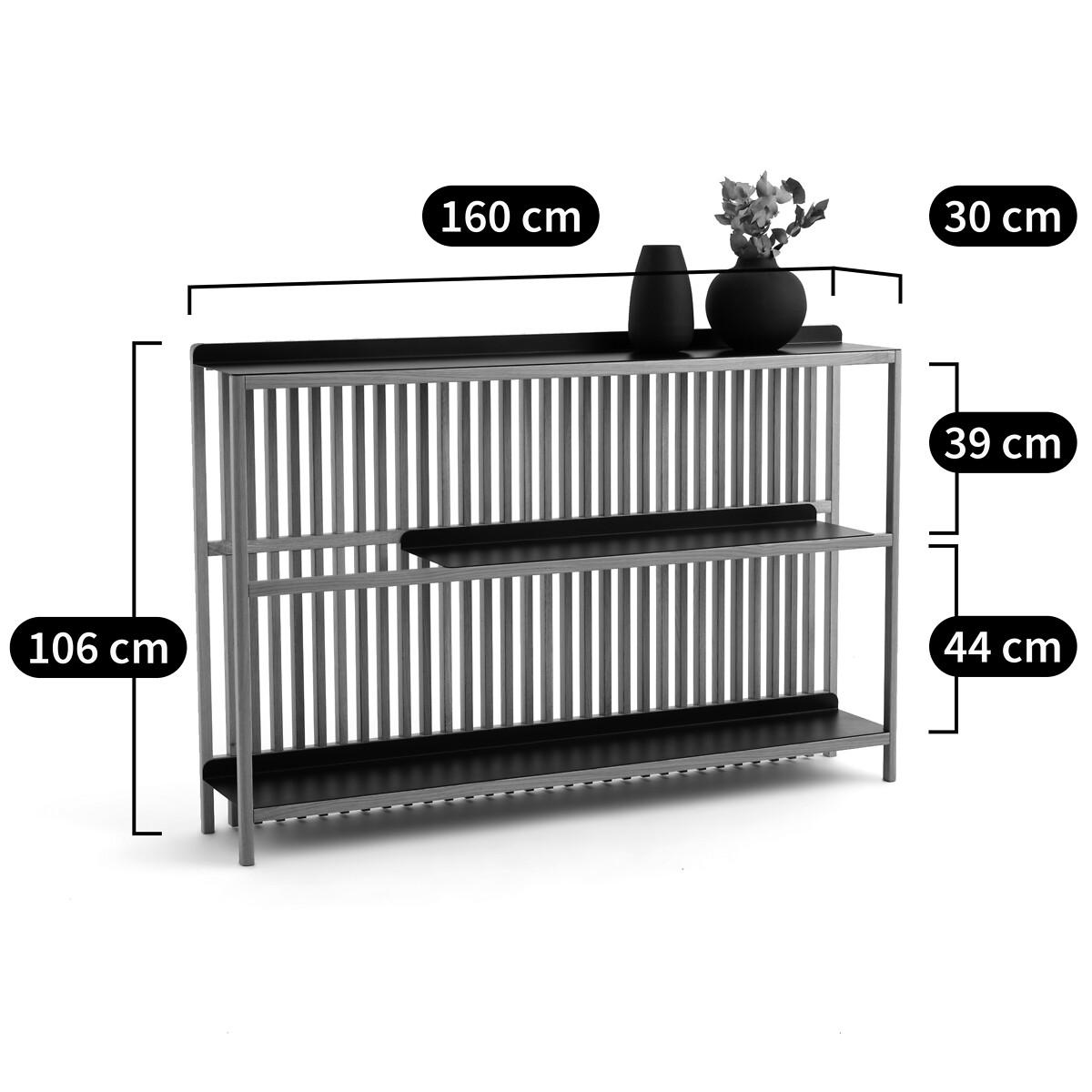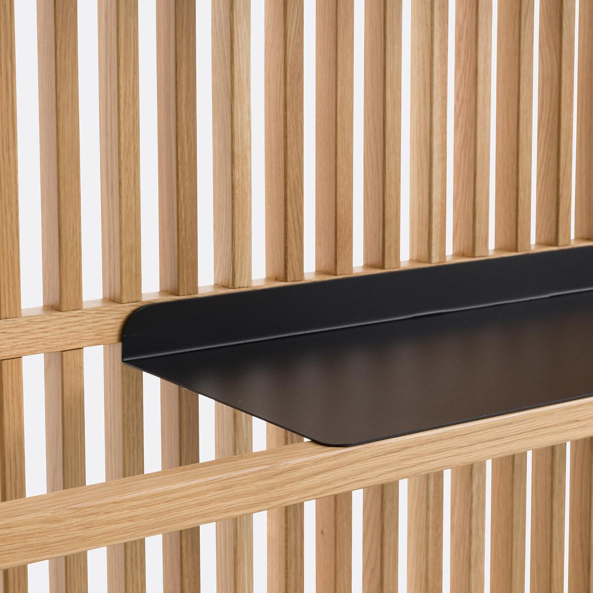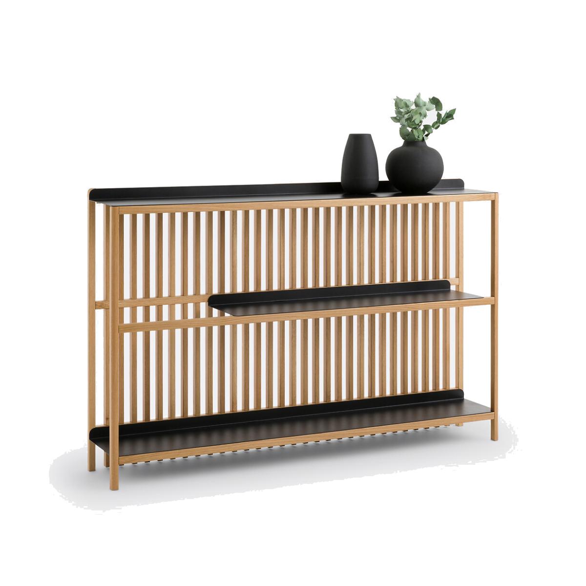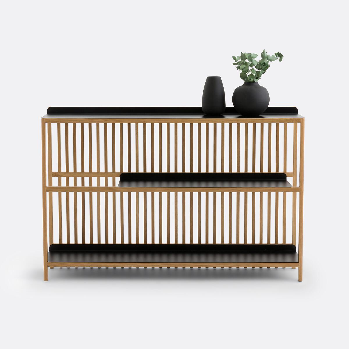 Scandinavian inspiration and industrial style: the Jac range combines spaced solid oak slats and steel sheet tops. Graphic and functional. Designed by La Redoute Interiors. Product Details • FSC® certified solid oak slats, nitrocellulose varnish finish • Tops in sheet steel, matt black paint, epoxy finishDimensions. Overall • Width: 160cm • Height: 106cm • Depth: 30cm. Usable space • Height of largest compartment: 39cm • Height of lower niche: 44cmDelivery:. Note! Please check that all access points are large enough to accommodate your delivery (doors, stairs, lifts). • WOOD FROM SUSTAINABLY MANAGED FORESTS. FSC® certified wood comes from forests that are environmentally, socially and economically well managed. Dimensions and weight of parcel2 parcels • L70 x H38 x D20cm. 22kg • L169 x H115 x D10cm. 30kg