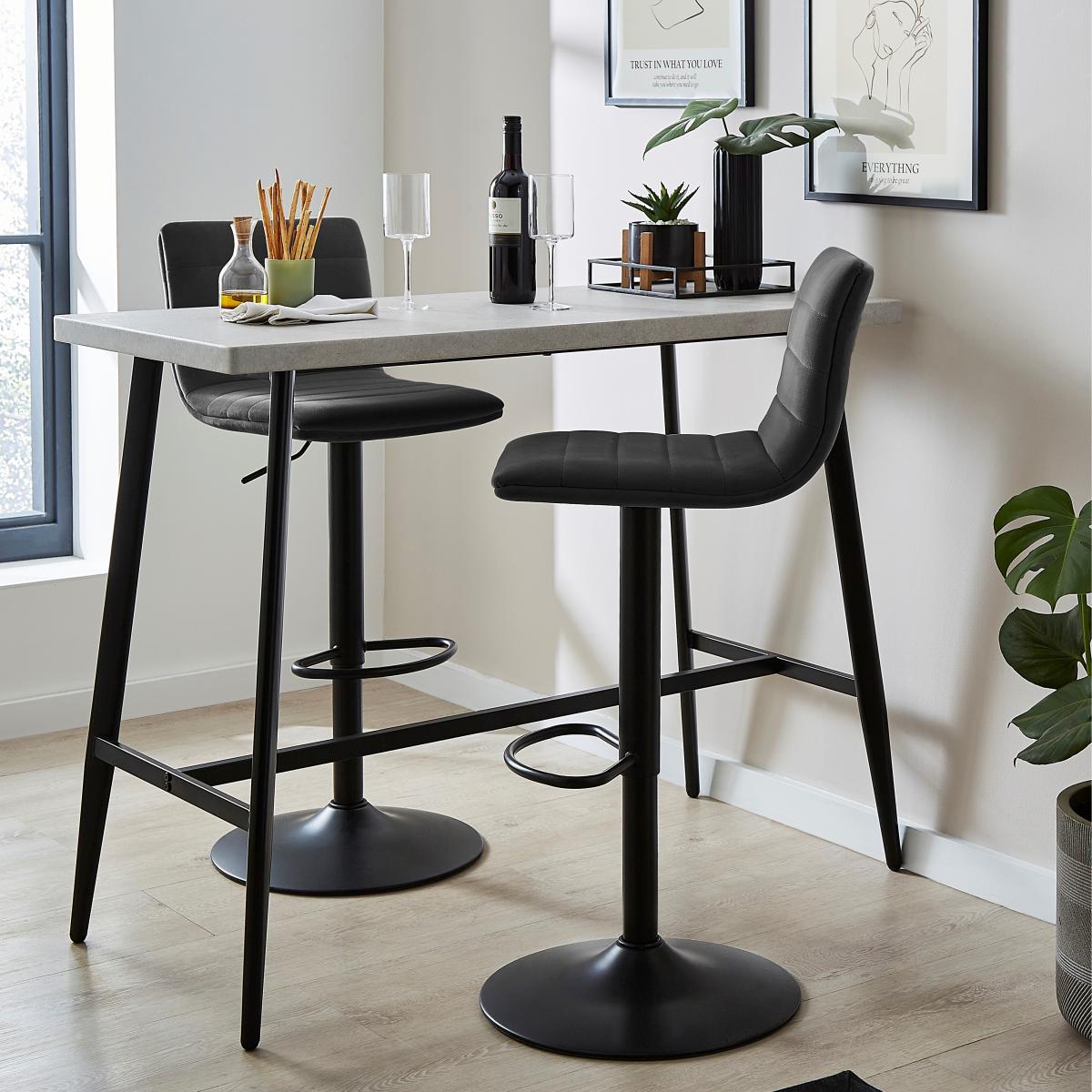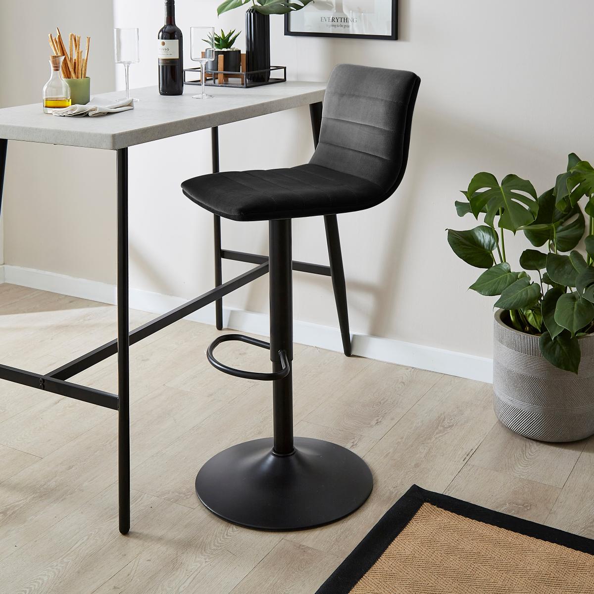 The Jace adjustable height bar stool in black is a versatile choice that works well in both modern and industrial-style interiors. Its clean lines and muted tone make it easy to pair with various colour schemes, from minimalist whites to bold, statement colours. I like to recommend it for contemporary kitchen islands or breakfast bars because of its practicality and adjustable feature, which ensures comfort for different users. To style it well, consider adding a matching black or metal-toned accessory, such as a pendant light or graphic wall art, to create a cohesive look. Keep the surrounding space uncluttered to emphasise the sleek silhouette of the stool, making it both functional and visually appealing.