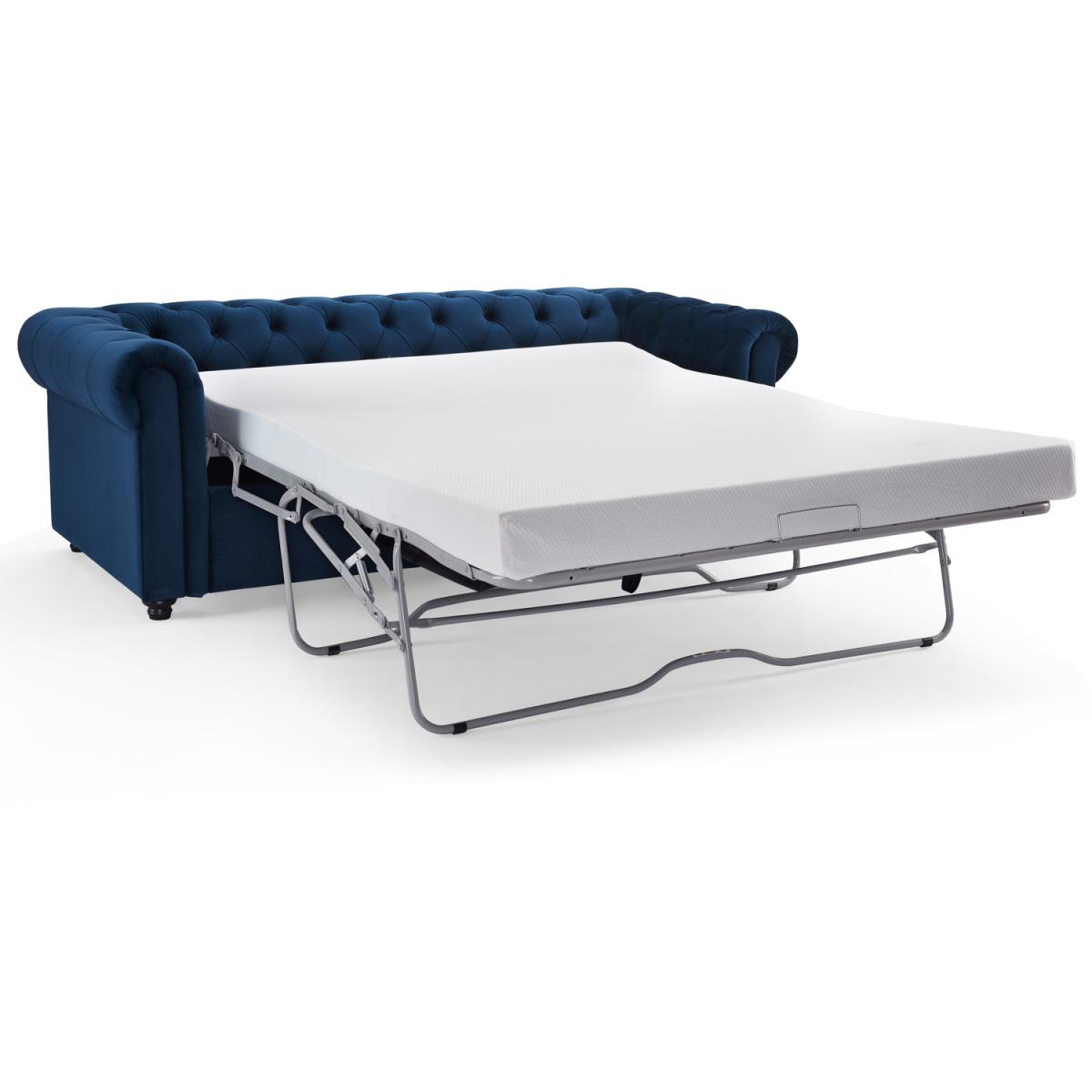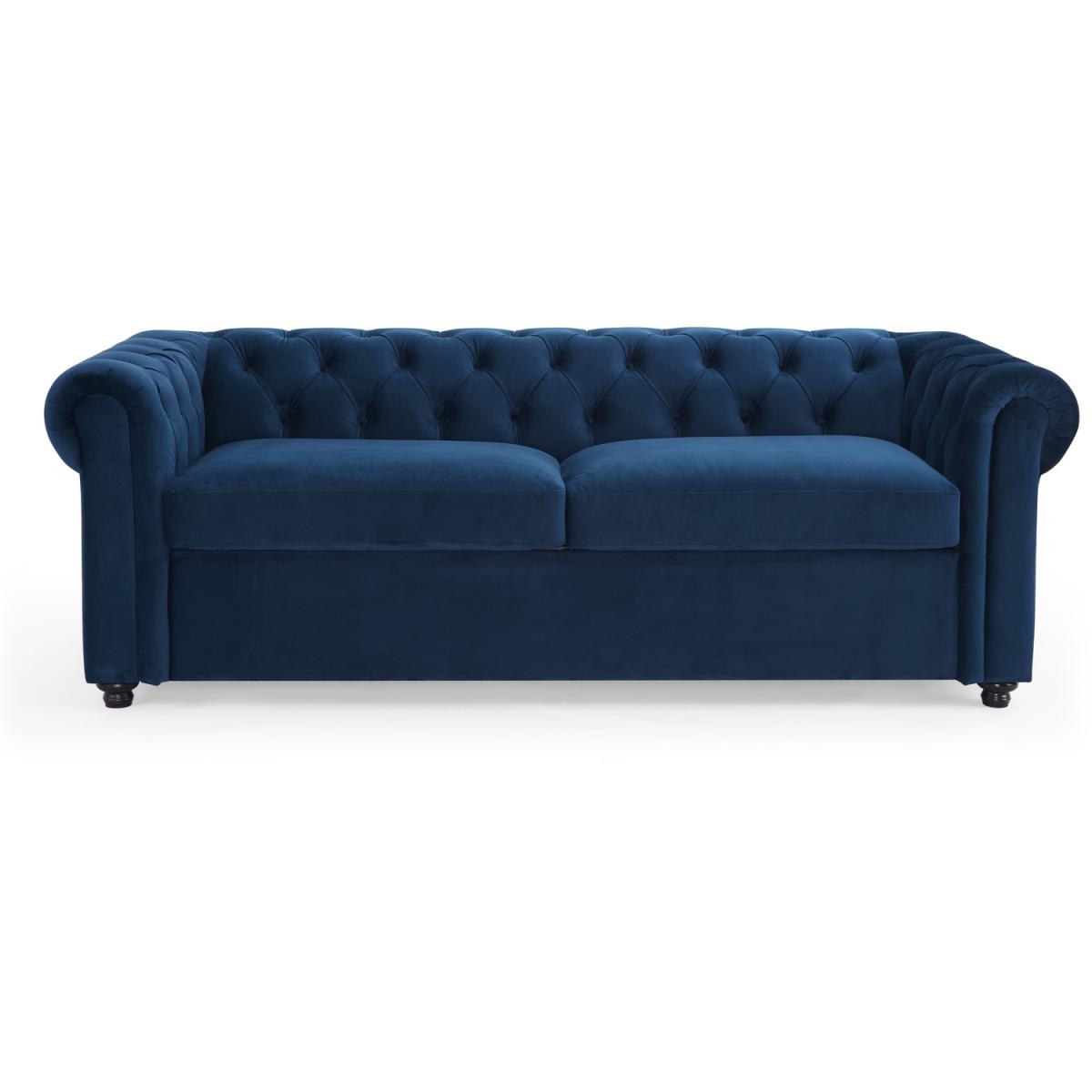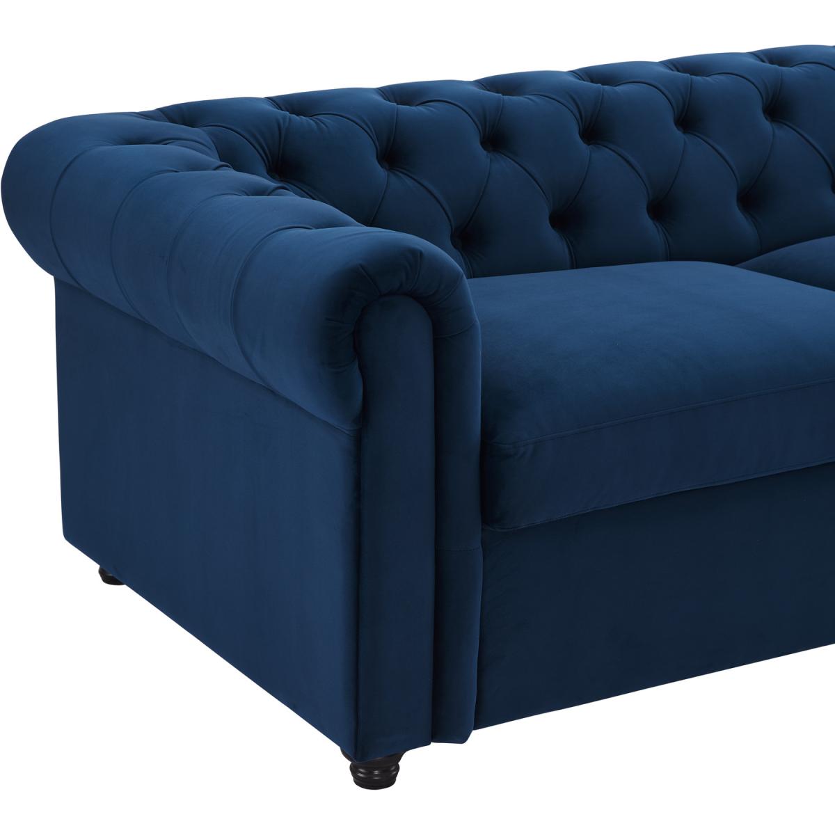 Introducing JACKSON our compact pull out chesterfield inspired sofa bed with fold out mattress available in grey velvet and blue velvet. JACKSON can seat up to 2 people as a sofa and the sleeping area converts to the size of a small double as a sofa bed. JACKSON has a compact boxy design ideal for small spaces where living and sleeping are needed in one place. It has has the classic chesterfield inspired tufted detail on the interior of the seat area and smooth velvet wrapping around the outside and stands on dark wooden block feet. JACKSON has a convertible design with a simple lift out mechanism with a fold out mattress supported by metal framework. Velvet is one of the most desirable upholstery fabrics. Its soft texture perfectly suits any piece of furniture and adds a touch of opulence and elegance. It is a woven polyester fabric with a short, thick, plush pile. This sofa is a large item, therefore we require you to ensure it will fit through any access doors and walkways in your property. Please consult our sofa fit guide which you can find in the pictures section. Minimum door width of 80cm. All sizes are approximate, please allow for small variations. Some fabrics may look slightly different in person due to variations in lighting and screen resolution on laptop, desktop and mobile devices. Velvet can have a distinct appearance, in natural light it tends to shimmer more, whereas in artificial lighting indoors, it tends to look more subdued. The colour of velvet may change if you stroke it in different directions, to maintain consistency, stroke the velvet in one direction with an open palm.