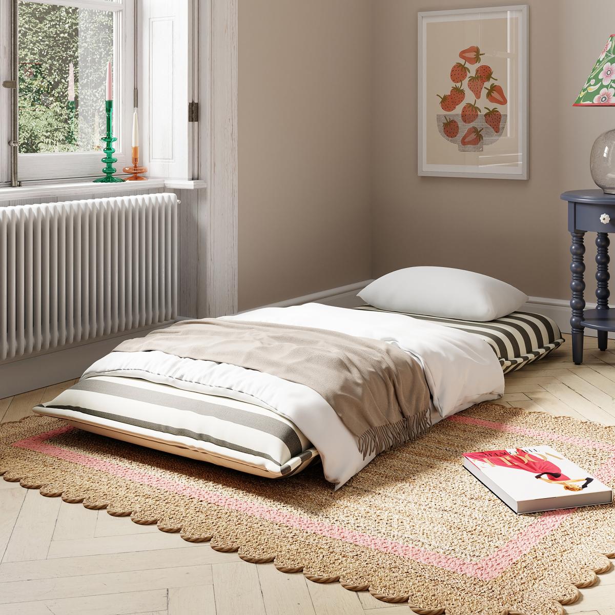 I love this foldable sofa bed for its versatile style and practical design. The black and white stripe adds a classic, timeless feel that works well in modern, minimalist, or coastal interiors. It’s great for small spaces, guest rooms, or even a living room that doubles as a sleep zone. Styling tips include layering with neutral or bold cushions for added comfort and visual interest. Pair it with a textured rug and a few contemporary accessories to keep the look fresh and inviting. Its foldaway feature not only maximises space but also makes it easy to set up for overnight guests, making it both practical and stylish.