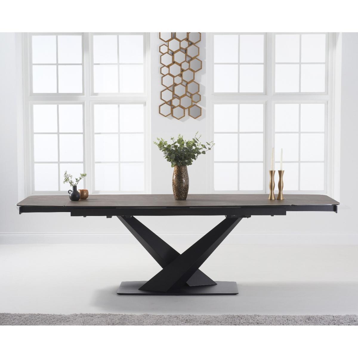 Featuring industrial styling, an ultra-modern ceramic top and the useful function of being able to extend, the 180cm mink Jacob table is perfect for modern living and adaptable to your space. Amp up the style factor by adding the Marcel Antique chairs, as seen here. Stunning cross over black metal base Glass table top with 3mm ceramic finish. Extendable and practical; table extends at both ends180cm table
