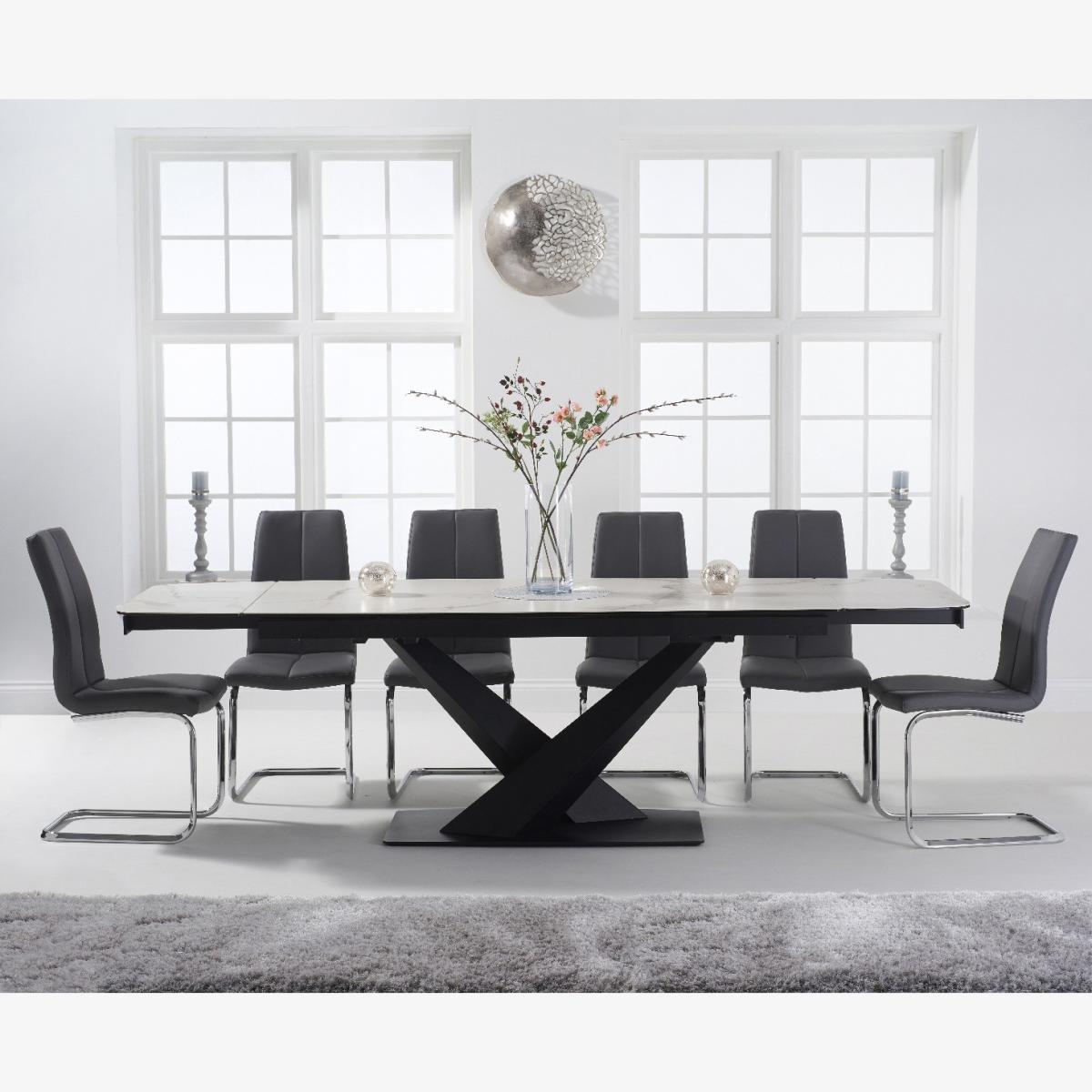 Jacob 180cm White Extending Ceramic Dining Table With 10 Grey Tarin Chairs