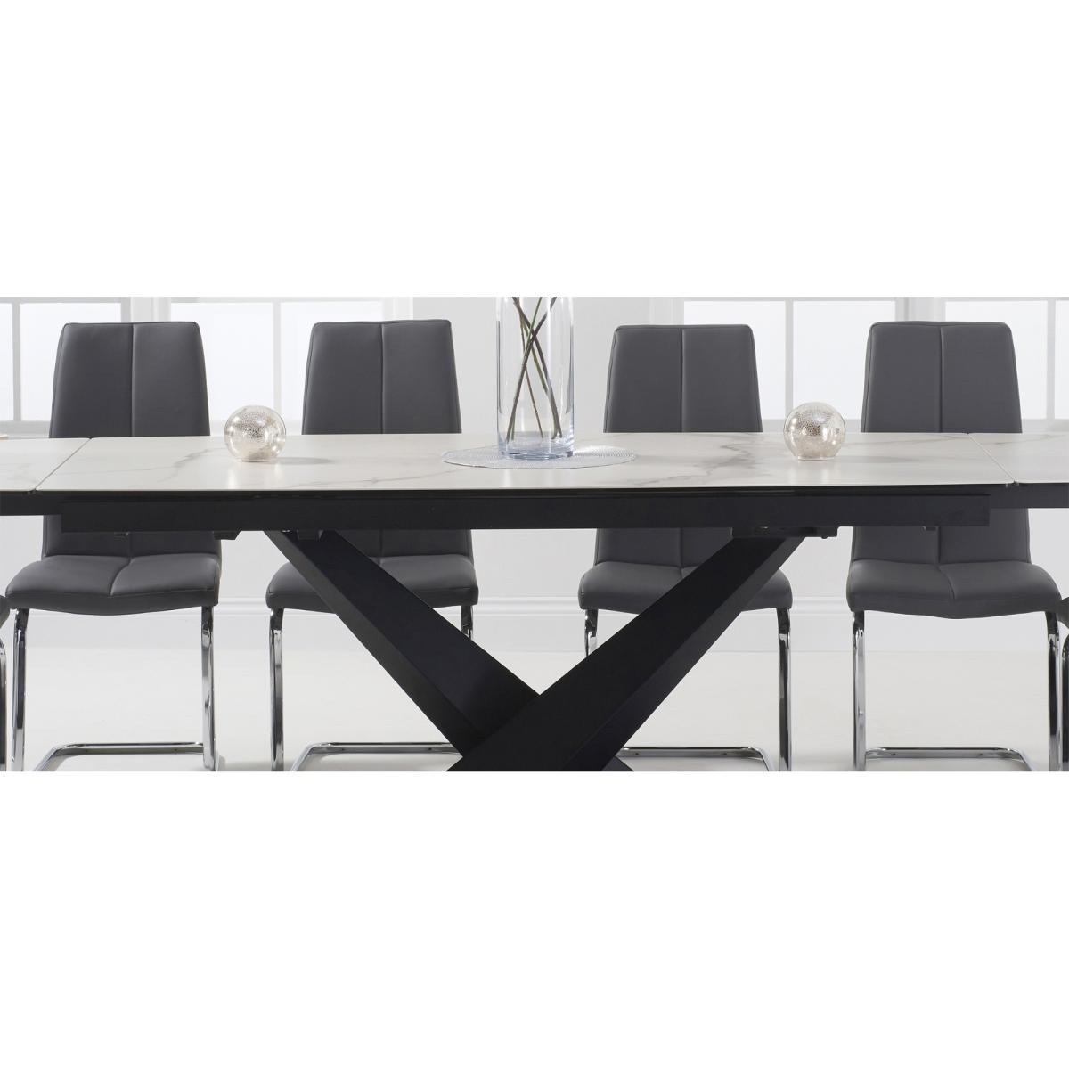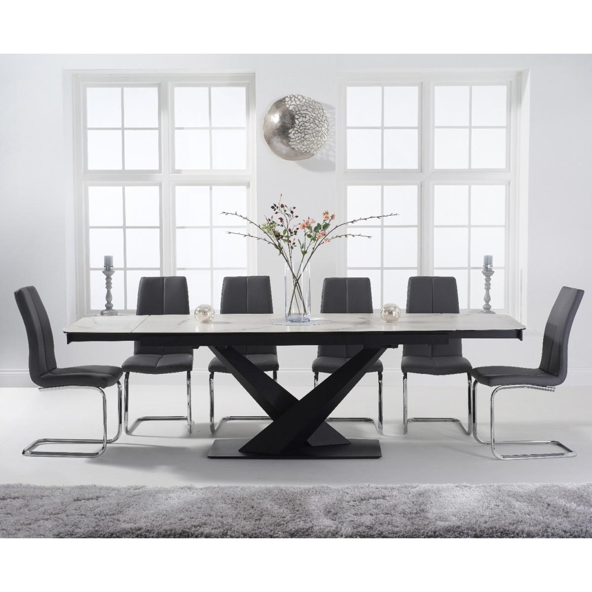 Jacob 180cm White Extending Ceramic Dining Table with Tarin Chairs - Grey, 6 Chairs