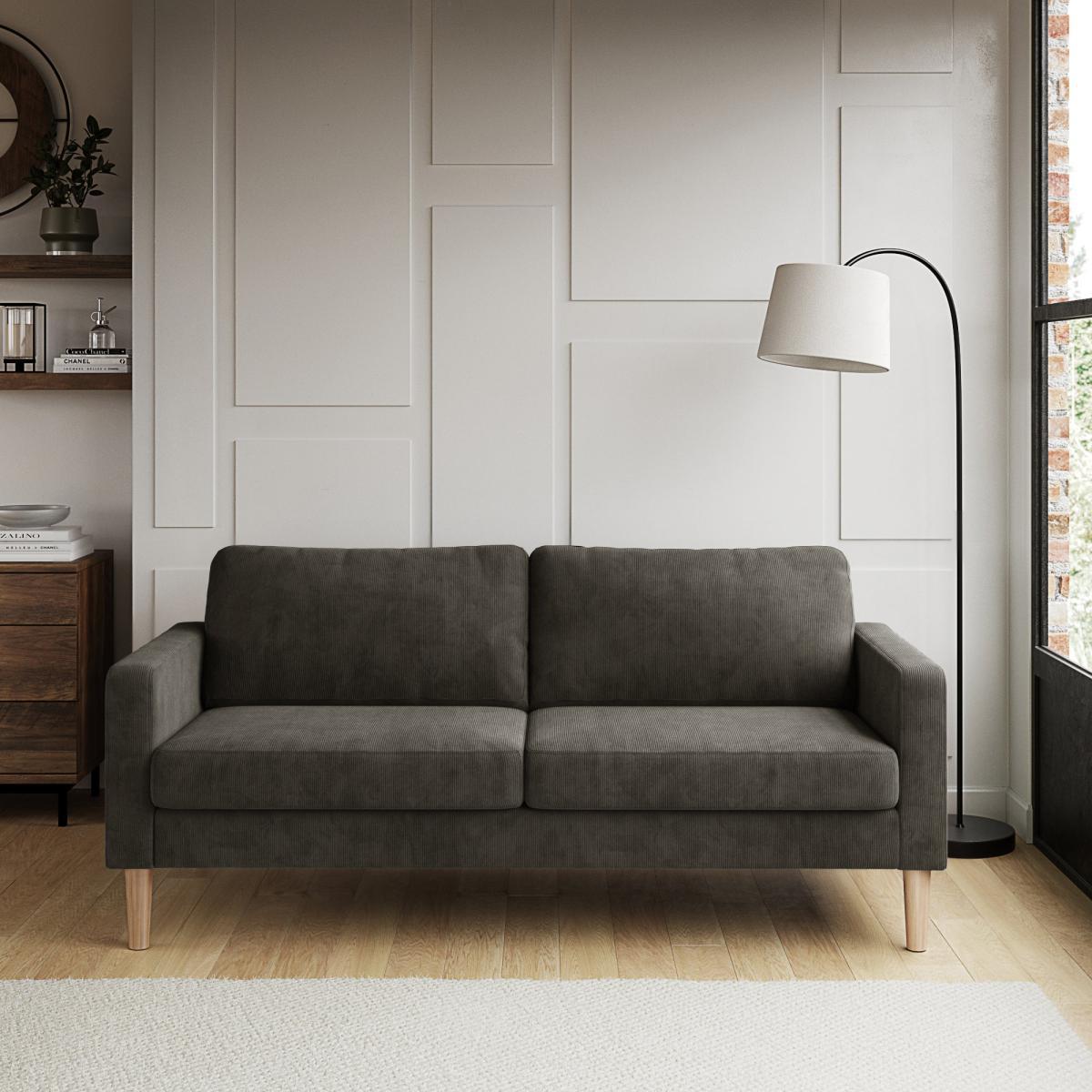 Designed with simplicity in mind, the Jacob Cord Charcoal 3 Seater Sofa is perfect for modern living spaces. Featuring a contemporary style with a stylish square silhouette, this incredibly comfortable sofa is upholstered in a durable corduroy fabric, with a textured surface that will help to keep your sofa looking great for longer. The Jacob 3 seater sofa is all about being cosy, the seat and back cushions are filled with super soft foam and wrapped with fibre for extra added comfort. Complete with removal cushion covers so cleaning is made easy. This gorgeous sofa is supported with a solid wood frame and a stylish set of high light beech wood legs made from sustainable wood. To check out our handy sizing guide to help you find out if you'll be able to get your new furniture into your home.