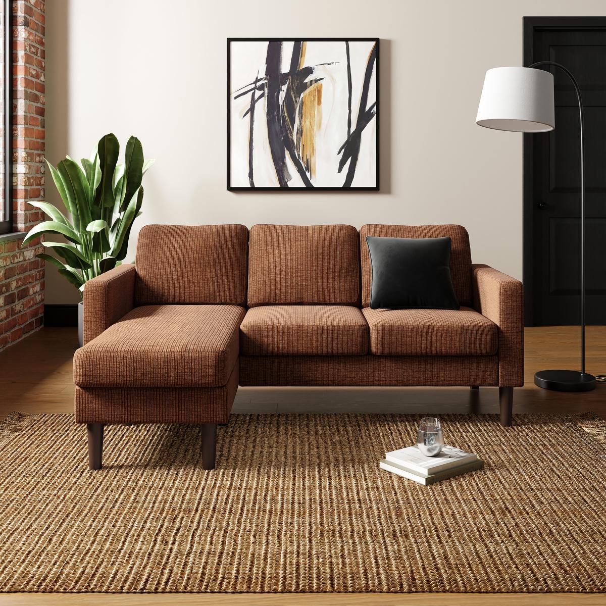 Dunelm Exclusive - Designed and Developed by Dunelm* Corner Chaise Sofa* Cord Charcoal Upholstery – Its textured surface means small scuffs or marks are easily hidden* Foam-Fibre Filled Seats and Back Cushions* Removable Sofa Cushion Covers* Solid Wood Frame with Beech Wood Legs* Sustainable Wood Structure* Adjustable Corner Chaise – Choose which side you would like the corner to suit your space. * Easy to Assemble – Simply Attach The Legs* 1 Year Guarantee The Jacob Cord Charcoal Compact Corner Chaise Sofa features a contemporary style design with a stylish square silhouette, the perfect addition for cosy and compact living spaces. Upholstered in a soft corduroy fabric that looks and feels amazing, its textured surface will help to keep your sofa looking incredible for longer. This compact corner sofa is sure to offer maximum support and comfort, with super soft seat and back cushions filled with foam and wrapped with fibre. The cushion covers are removal making cleaning a breeze. Complete with an adjustable corner chaise, perfect for providing extra comfort and relaxation after a long day. dunelm. com/infodocs/downloads/Furniture-Sizing-Guide. pdf) to check out our handy sizing guide to help you find out if you'll be able to get your new furniture into your home. Need to throw out your old sofa first? View our information on [furniture recycling and collections](https://www. dunelm. com/info/about/mattress-and-furniture-recycling).