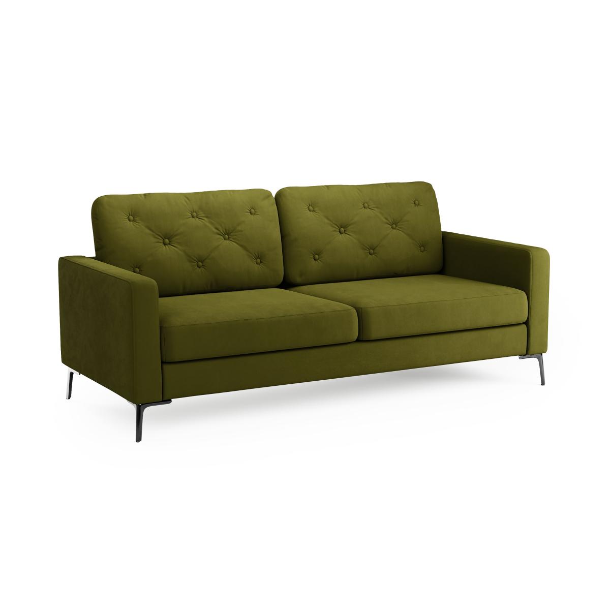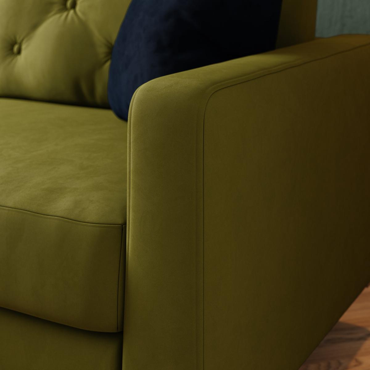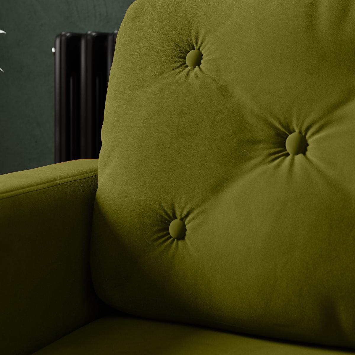 Jacob Velvet Buttoned Compact 3 Seater Sofa Olive
