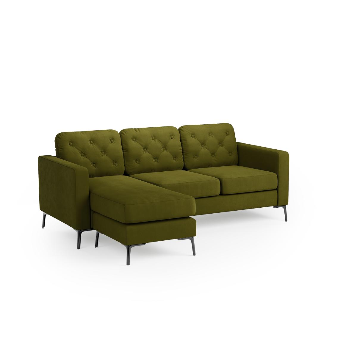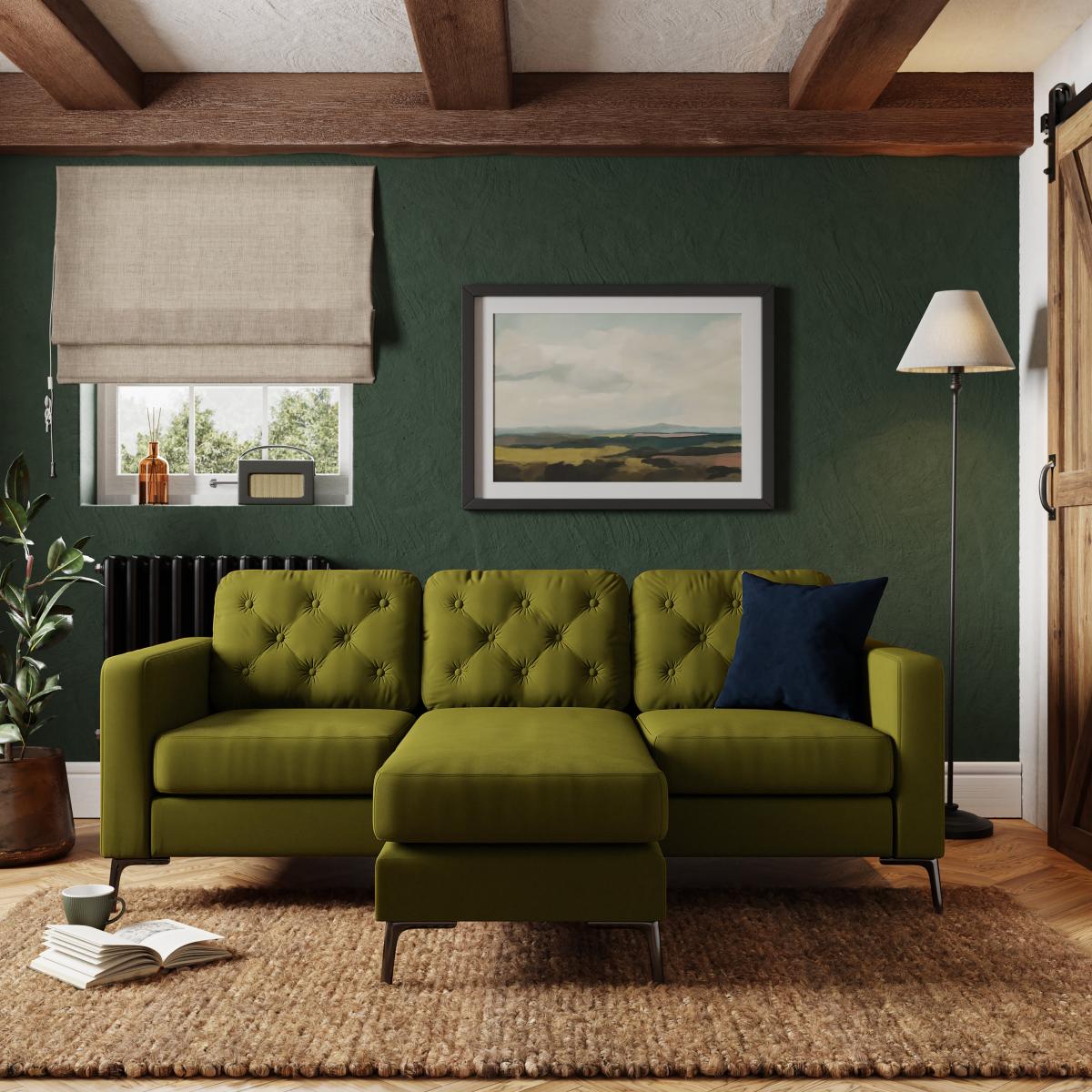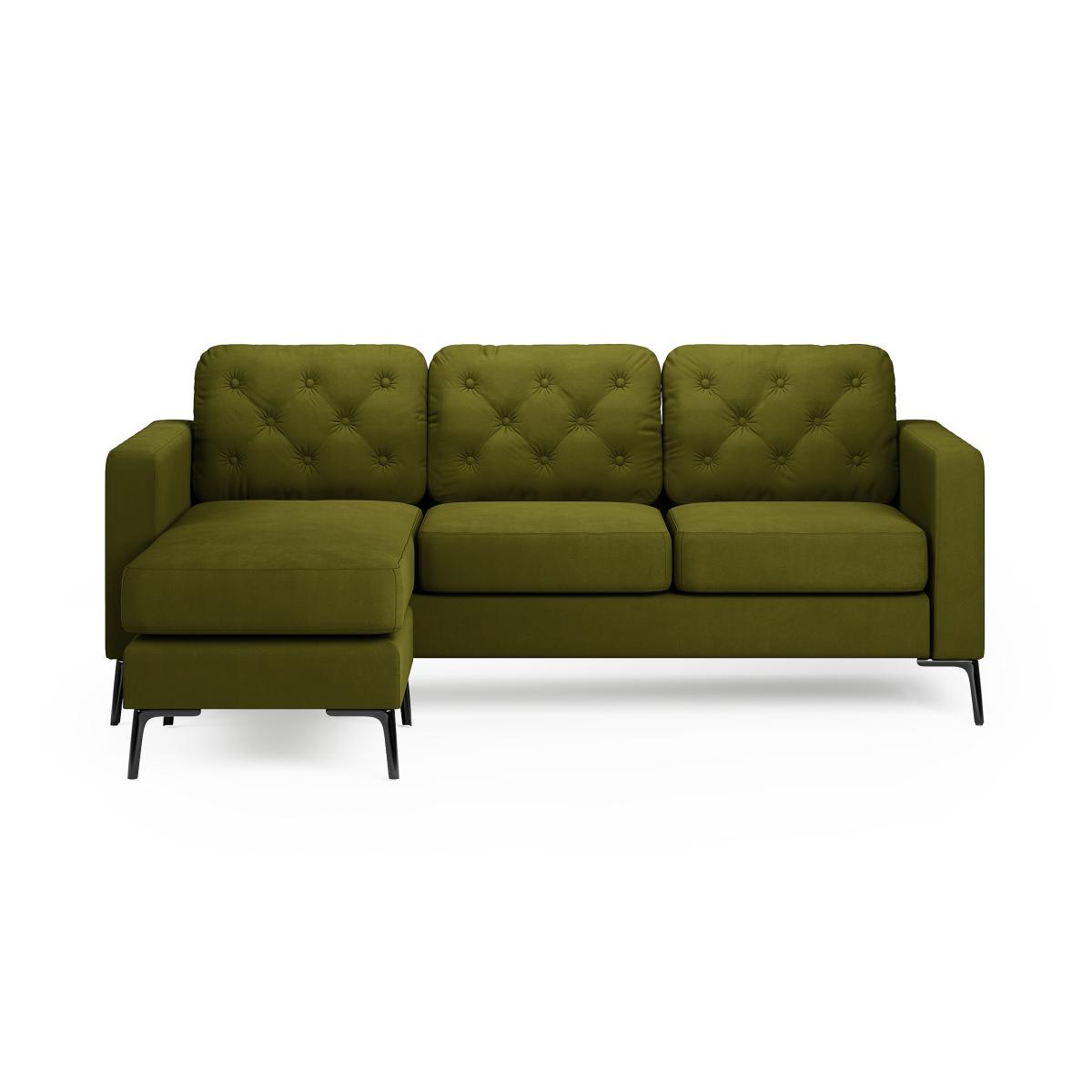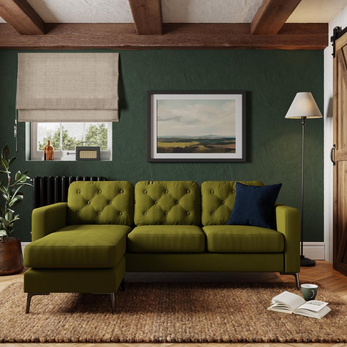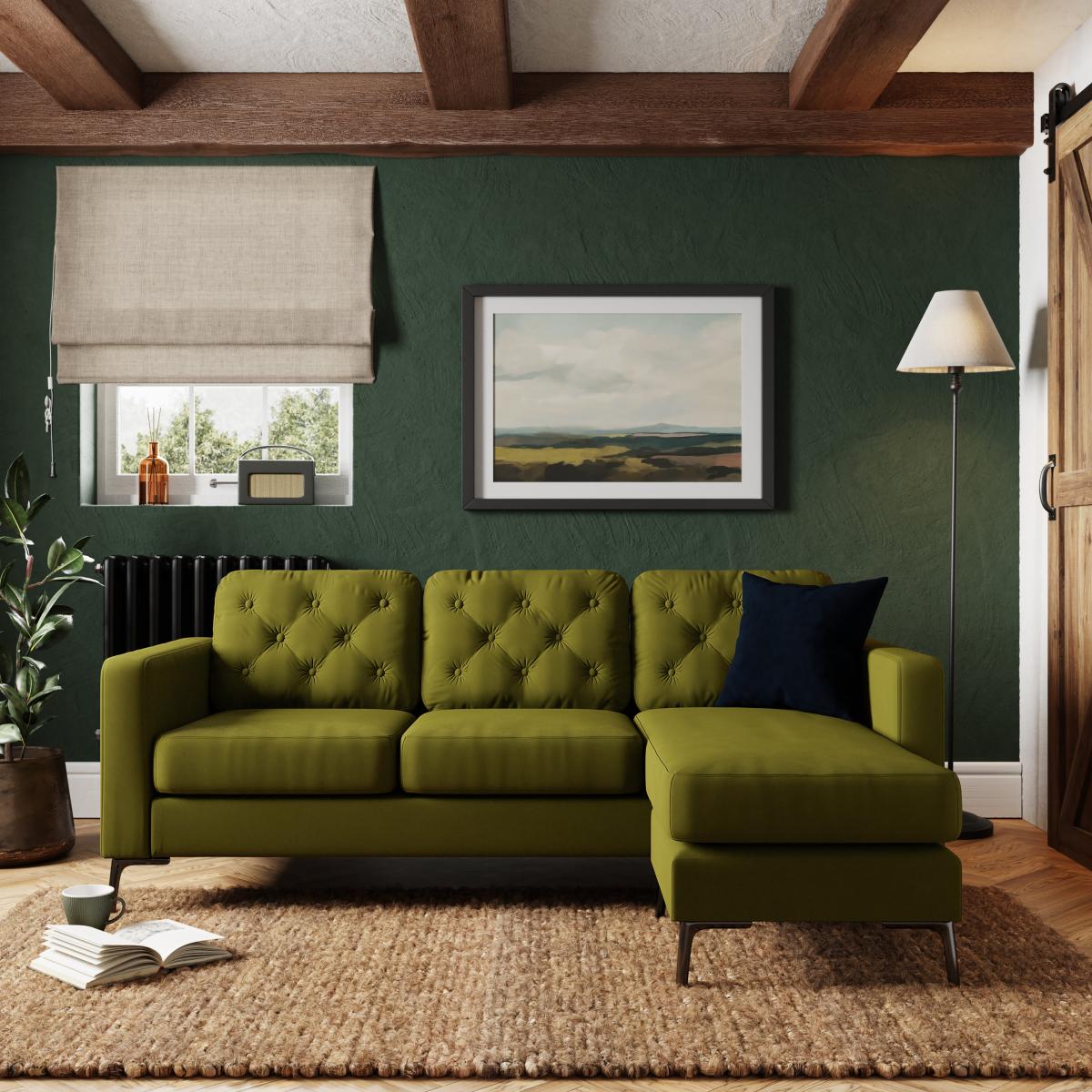 Jacob Velvet Buttoned Compact Corner Chaise Sofa Olive