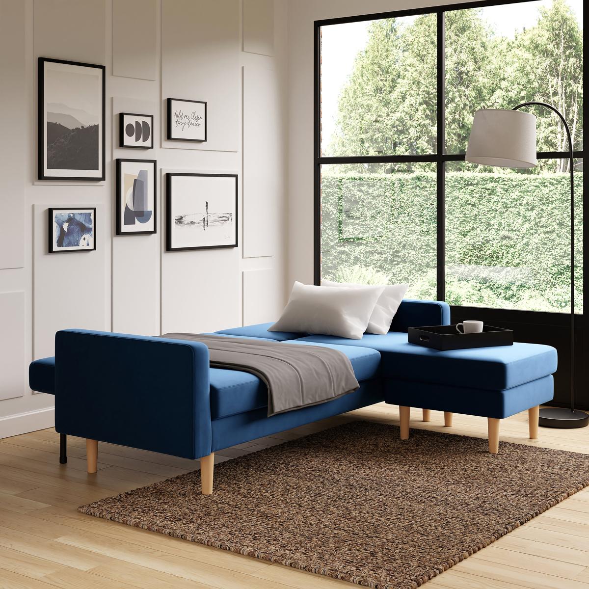 Jacob Velvet Corner Sofabed Navy