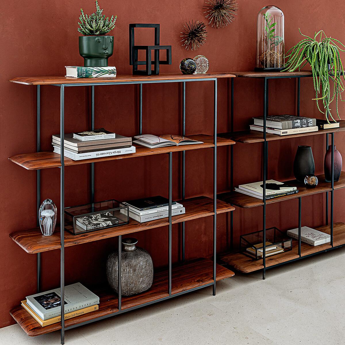 The Jacobson Walnut Bookcase offers a sleek, functional silhouette that works well in both modern and industrial interiors. I love its rich walnut finish, which adds warmth and sophistication to any space, whether in a living room, home office, or hallway. Its open shelving design lends itself to versatile styling; you can display books, decorative objects, or a mix of both, creating a curated look. Practical tips include layering items of varying heights for visual interest, and using baskets or boxes on the lower shelves for storage to keep things tidy. This piece's minimalist frame makes it easy to incorporate into various colour palettes and decor styles, making it a timeless addition for those looking for both function and style.