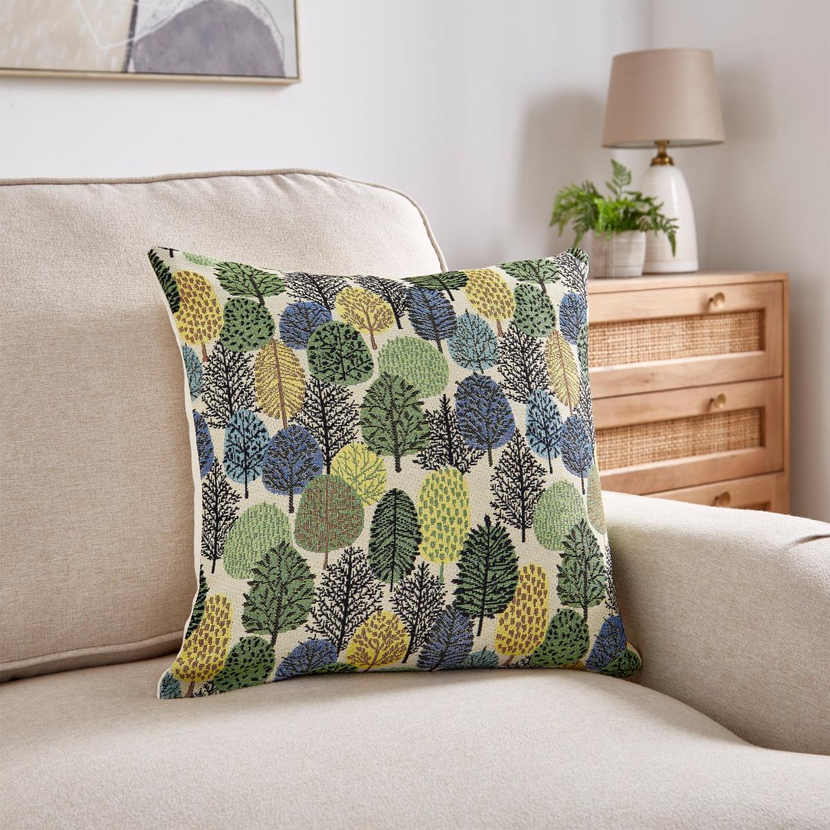 * Comfortable cushion* Add a pop of style to your space* Easy to clean Add some outdoorsy charm to your home decor with this Jacquard Trees Cover! Its square shape and zip to secure inserted filling make it easy to use and maintain. Plus, you can throw it in the washing machine when it needs a clean. Talk about effortless style!