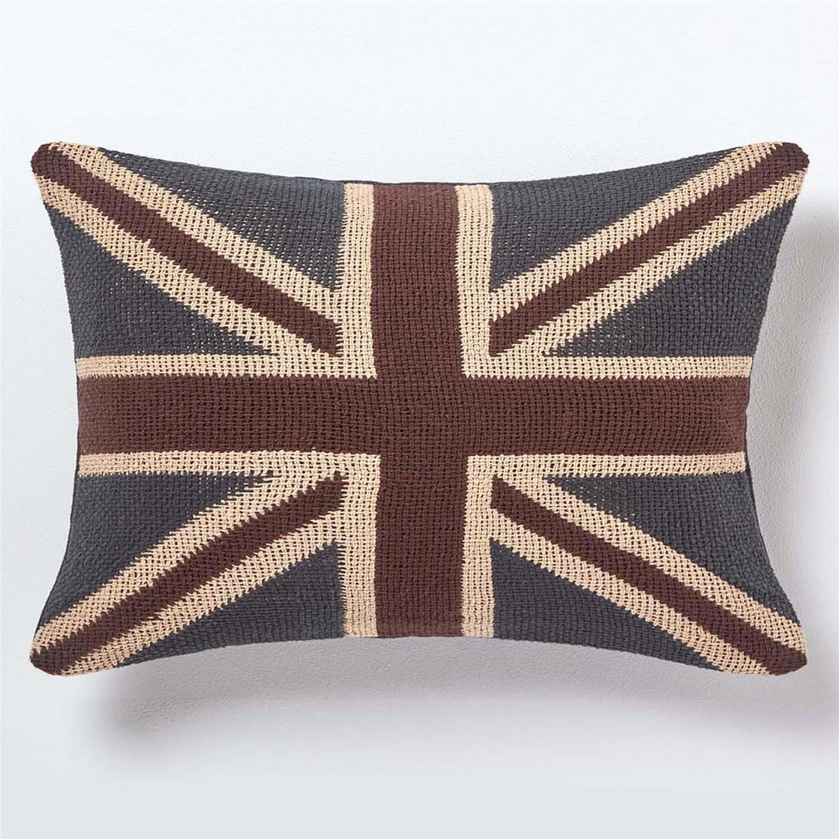 Jacquard Union Jack Tapestry Pillow Cover. This decorative Union Jack cushion cover brings a little bit of British Charm into your interior. The quirky colour combination of dark blue, rust and cream give this national flag cushion cover an unusual look and style. The cushion cover is hand-woven and has a hidden zipper on the back. This cushion cover fits perfectly in classic or rustic room concepts thanks to its warm colours. But it also looks stunning in modern or minimalistic interiors. It can be a decorative eye catcher on your sofa, bed or bench and also makes a lovely Union Jack gift not only for patriots but also for Great Britain fans on many occasions. The cushion cover is also available in size 45 x 45 cm and with a USA flag design. These scatter cushion covers have been designed to complement our Union Jack and USA Stars and Stripes throws.