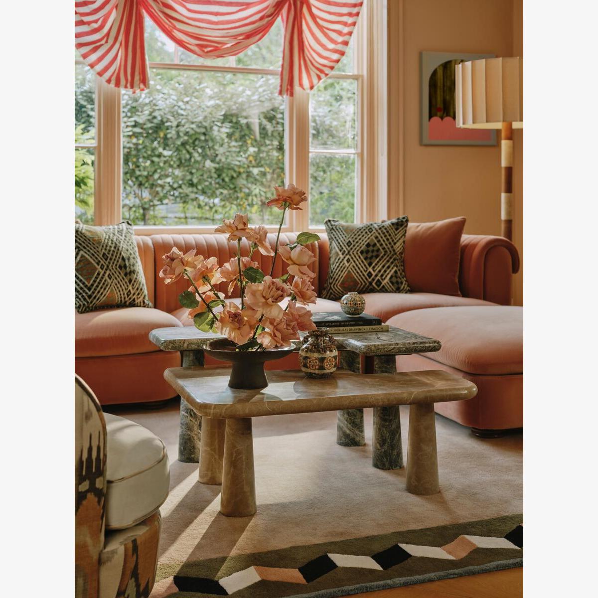 The Jada coffee table set is a stylish piece that works well in both contemporary and traditional interiors. I love its marble top with a mix of Light Emperador and Verde Bosque, which brings a refined and sophisticated touch to the space. It’s versatile enough to sit comfortably in a cosy lounge or a more glamorous open-plan living area. For styling tips, consider adding a statement vase or sculpture on top, and keep nearby accessories minimal to let the natural beauty of the marble shine. Pairing it with soft textured textiles and muted tones can create a warm, inviting atmosphere, while the marble adds an elegant focal point that elevates the entire room.