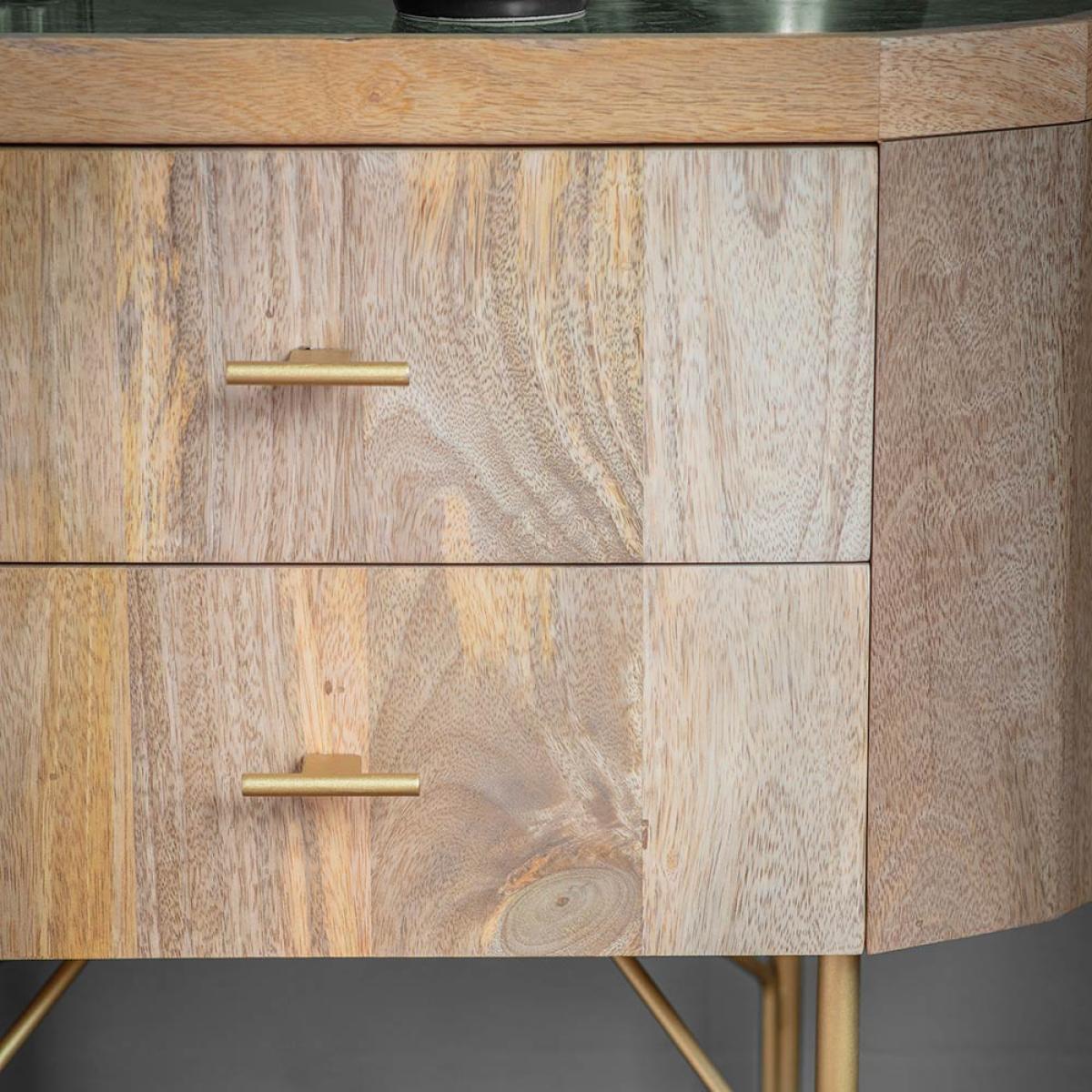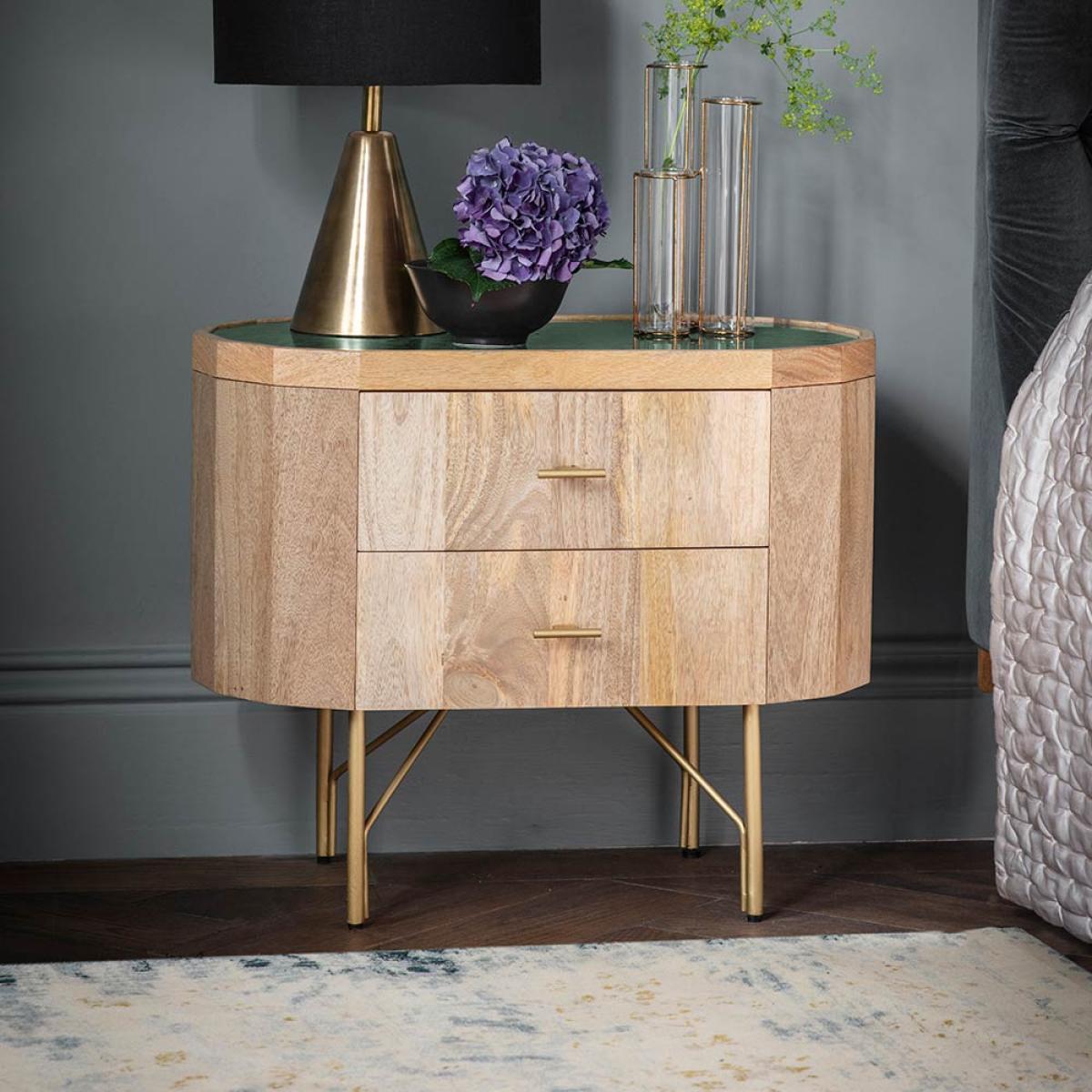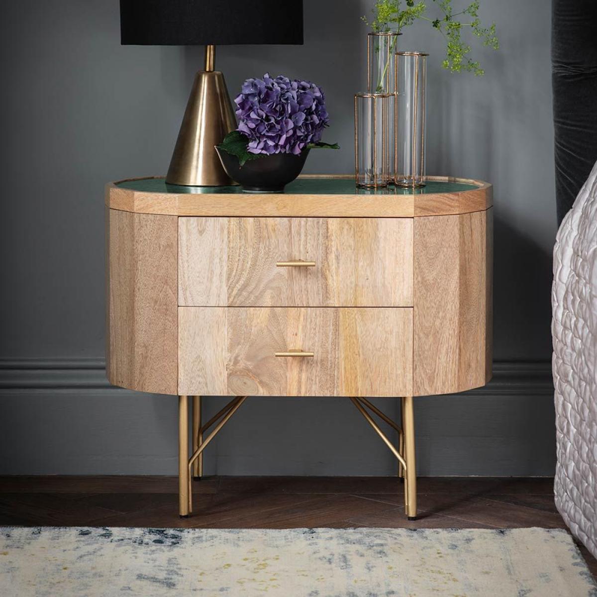 For a Mid-Century Modern look with a Scandi feel, our Jade Marble Bedside Unit combines a mango wood with an green marble top and iron legs. Its curved design makes it stand out from the crowd while the two drawers provide plenty of storage.