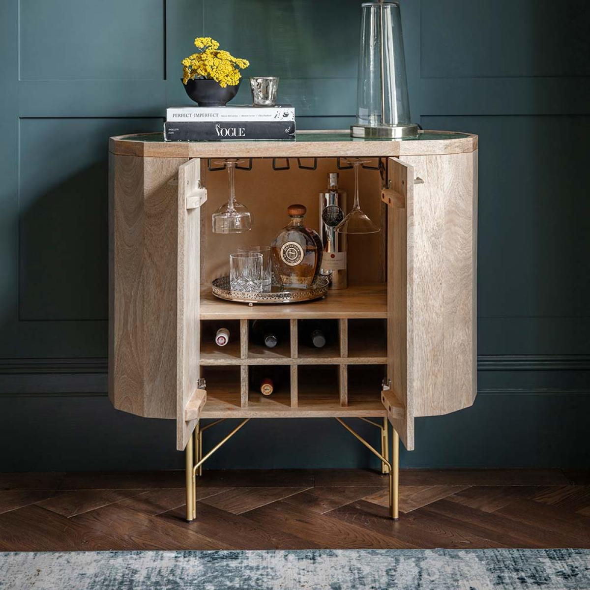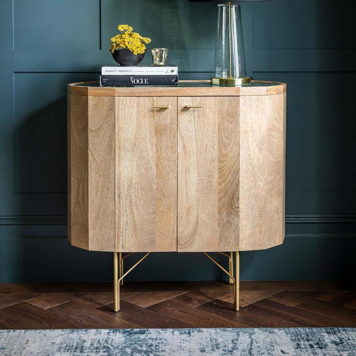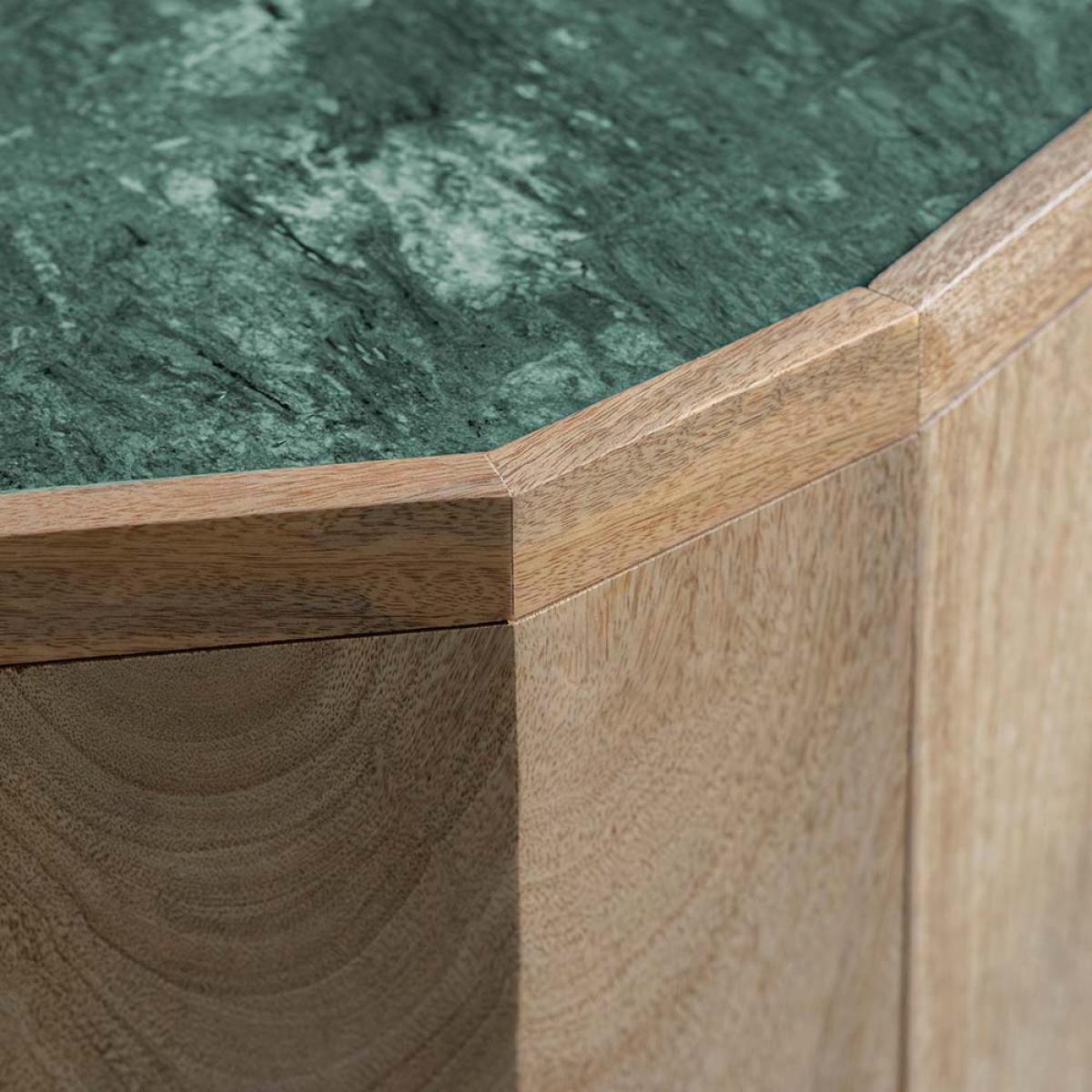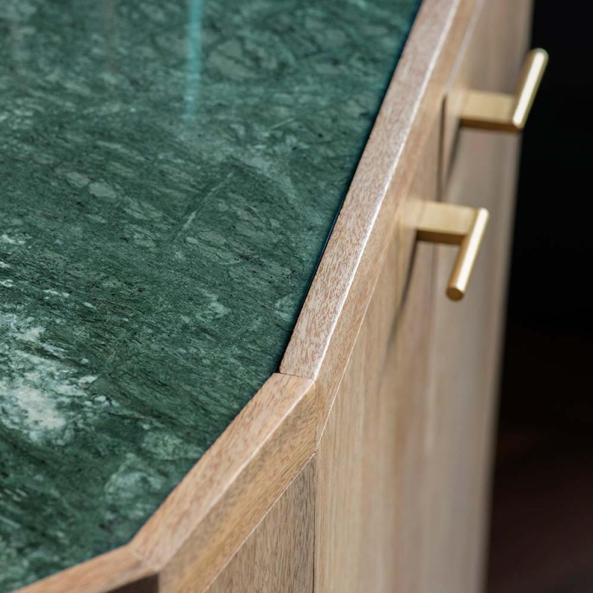 I love this drinks cabinet for its sophisticated blend of the luxurious jade marble top with the warm, natural wood finish. It works particularly well in both modern and eclectic interiors, adding a touch of elegance without feeling overly formal. Practical styling tips include pairing it with a few curated accessories-think elegant glassware, a decorative tray, or some fresh greenery-to create a inviting bar space. Its compact size makes it perfect for smaller rooms or as a statement piece in a larger living area. To keep it looking tidy, consider using the interior for storing bar essentials or glassware, allowing the marble top to remain a stylish focal point.