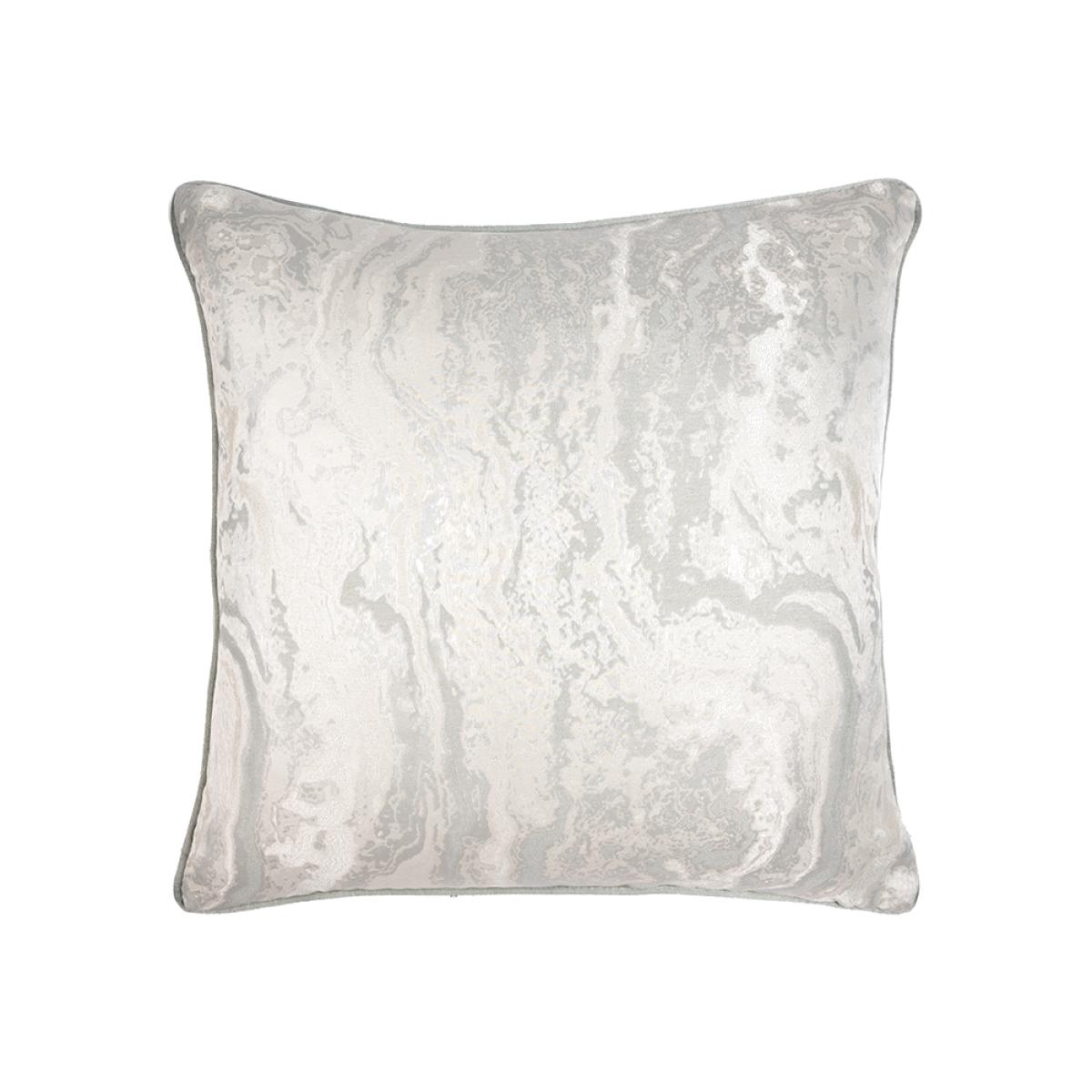 50cm x 50cm piped cushion with luxurious feather filling. High quality polyester fabric with woven marble design. ‘Invisible’ zip fastening. Exclusive design. Dry clean only, do not bleach or tumble dry.