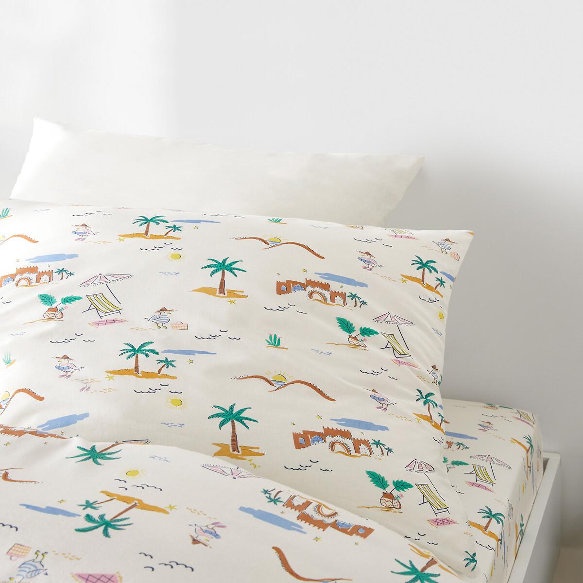 Deckchairs, palm trees, parasols and the seaside... a charming, fresh and colourful world that takes us straight on holiday! The Jadida duvet cover set is by La Redoute Intérieurs. Cotton is part of our daily lives. We love it for its suppleness and softness. Easy Care, it is ideal for the beds of young and old alike!Product Details • 100% cotton, 115g/m2 • Contains 50% recycled cotton • 144 thread count • Beach design on both sides • Straight buttoned hem. As the seasons change, add your own personal touch by mixing the Jadida range with our range of Scenario plain bed linen. Care Advice • Machine washable at 40°CDimensions • Duvet cover 140 x 200cm + 1 rectangular pillowcase 50 x 70cm: Single • Duvet cover 160 x 210cm + 1 rectangular pillowcase 50 x 70cm :Single • Recycled cotton. Using recycled cotton is all about conserving resources and reducing waste. • OEKO-TEX® Standard 100. Standard 100 certification by OEKO-TEX® tests textile products for harmful substances via an independent, international label.