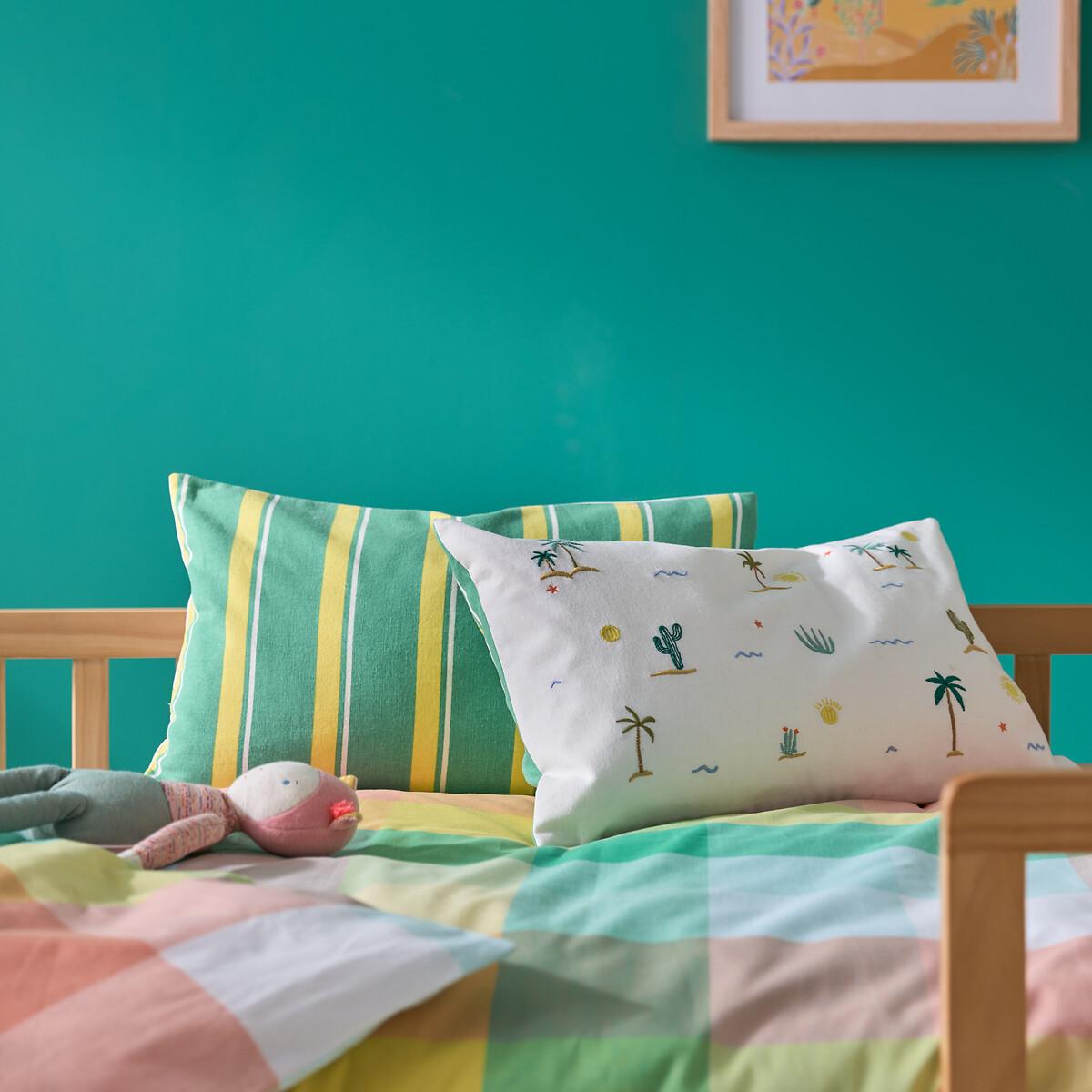 The Jadida cushion cover has a tropical feel, with stripes on the reverse. Designed in cotton by La Redoute Intérieurs. Product Details • 100% cotton • Embroidered front, printed stripes on back • Zip fastening • Care instructions • Washable at 40°CDimensions • 50 x 30cm • OEKO-TEX® Standard 100. Standard 100 certification by OEKO-TEX® tests textile products for harmful substances via an independent, international label.