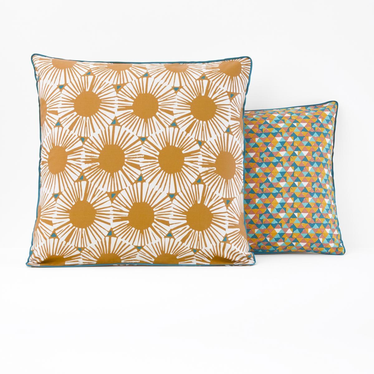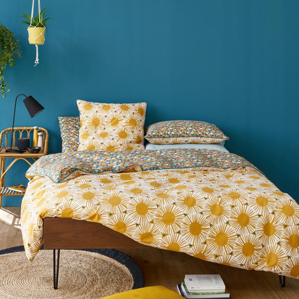 I love this geometric cotton pillowcase for its fresh, modern vibe and versatile style. Its bold pattern works particularly well in contemporary or minimalist interiors, adding a pop of colour and visual interest without overwhelming the space. It’s a practical choice too, being made of cotton which ensures easy care and durability. For styling tips, pair it with neutral or monochrome bed linens to make the pattern really stand out, or team it with other patterned cushions for a layered, eclectic look. It’s also fantastic for adding a graphic accent to a wood or metal bedframe, making it perfect for living rooms or bedrooms where a bit of colour and personality is desired.