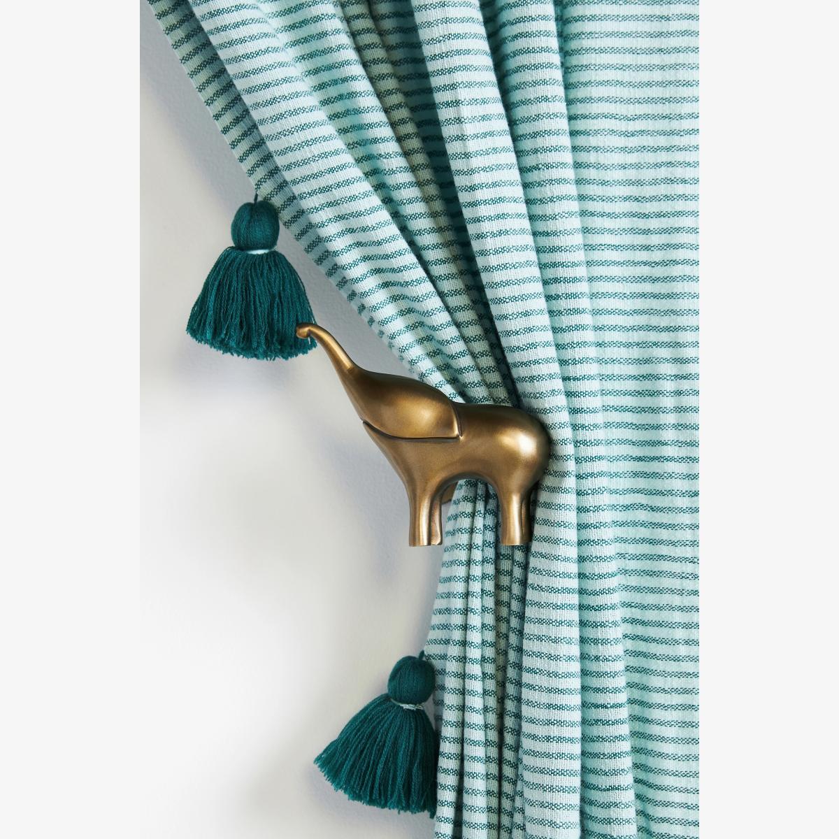 I love the vibe this Jai Elephant curtain holdback brings to a space-it's a fun yet elegant detail that adds a touch of personality to your window treatment. It works particularly well in eclectic, boho, or playful interiors, where little whimsical accents are welcome. When styling, consider pairing it with soft, textured fabrics and layered curtains to make the elephant pop while maintaining a cohesive look. Practical tips include using it to create a neat fold-back for ease of access or to introduce colour contrasts or complementary tones with other accessories in the room. It’s a small detail, but it can really elevate the overall aesthetic while being functional too.