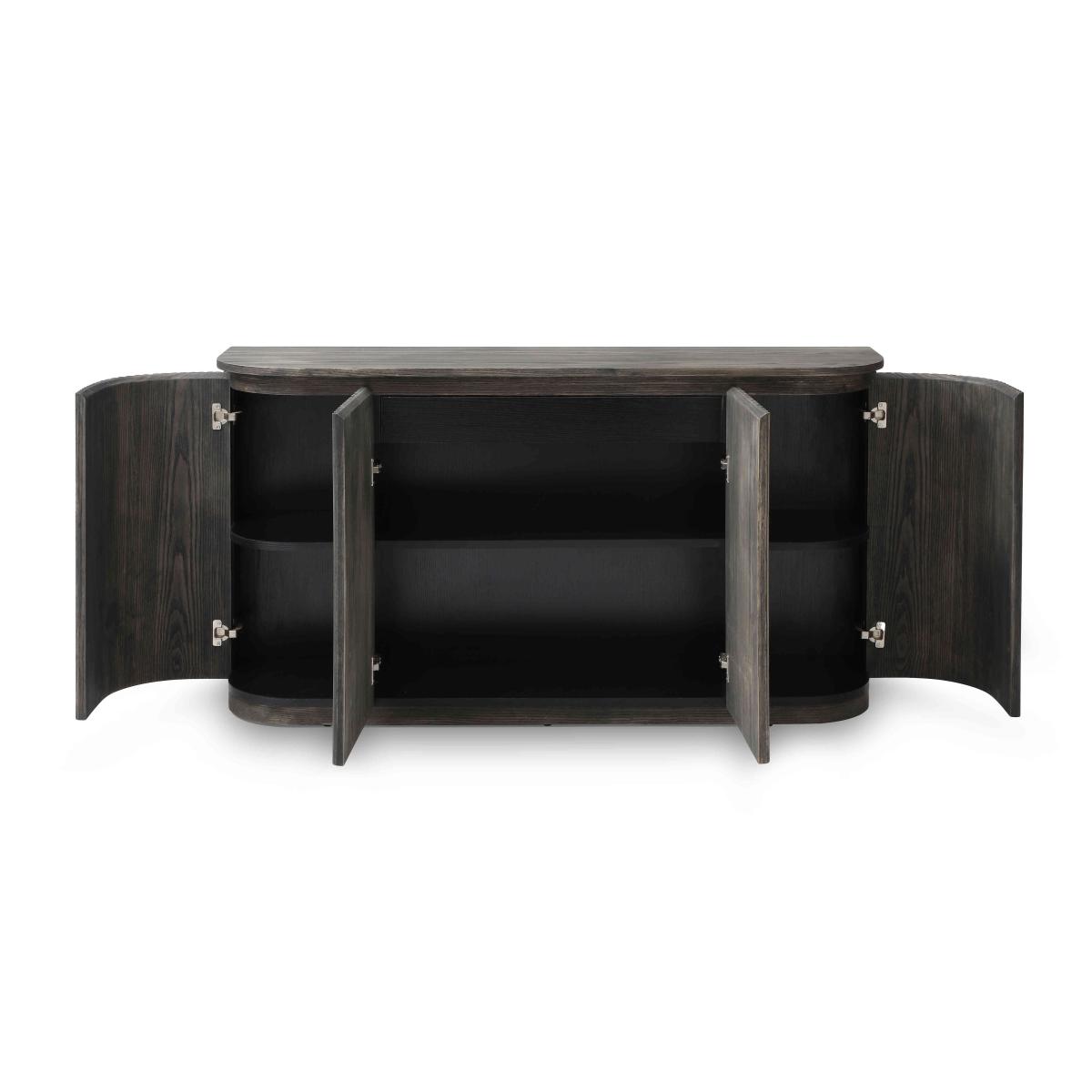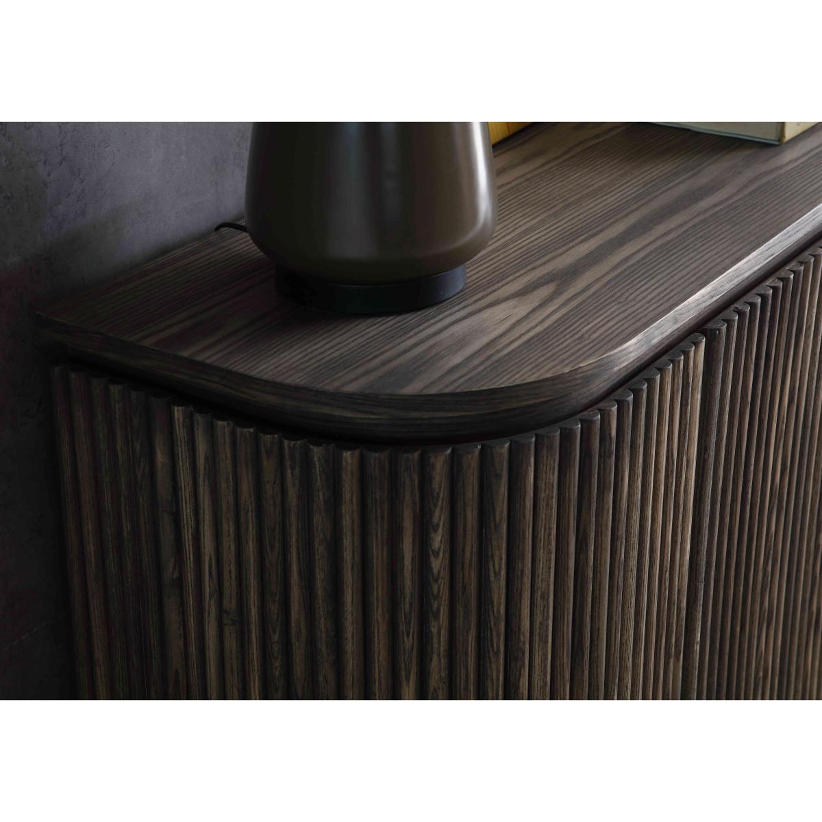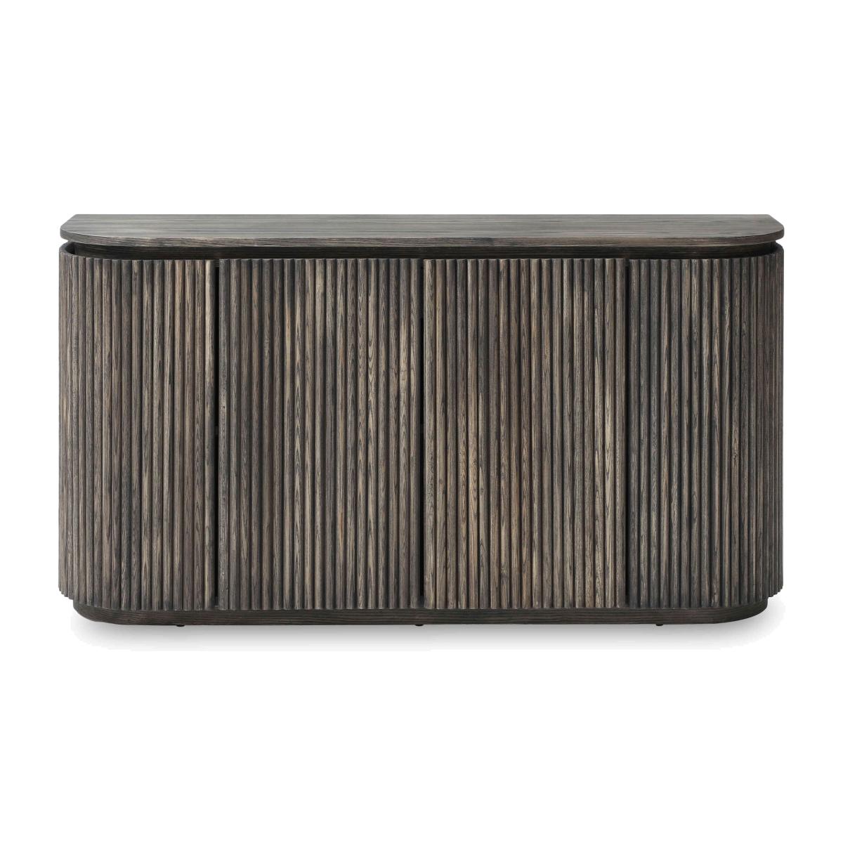 This stylish sideboard presents a wealth of on-trend design details – linear grooving, antiqued finish and soft-closing doors – as well as spacious and functional storage. Why you'll love it Modern urban style for relaxed dining spaces. With stylish rounded edges, this sideboard is well-crafted, on-trend and great value. In characterful dark oak veneer with linear grooves and a striking antiqued finish. Hardwearing and versatile – this sideboard suits both family and formal dining spaces. Soft-closing cupboard doors. Handcrafted. A Furniture Village exclusive. This large sideboard is part of our Jai range. What you need to know 3 cupboards each with 1 adjustable shelf. Every piece of veneer or solid wood has unique and natural marks, knots and colour variation. Avoid placing in direct sunlight or close to a heat source. We recommend using coasters and placemats at all times. WARNING!