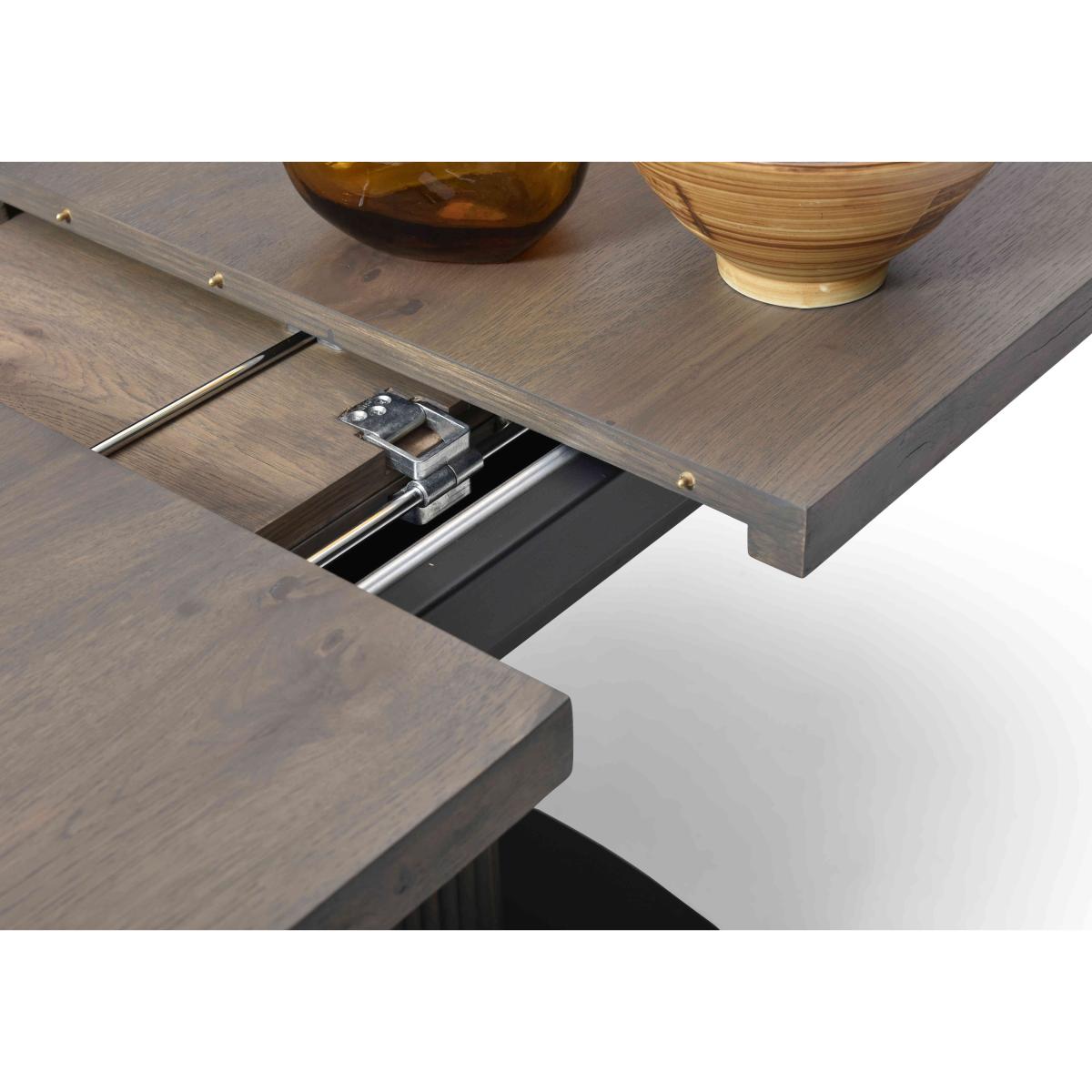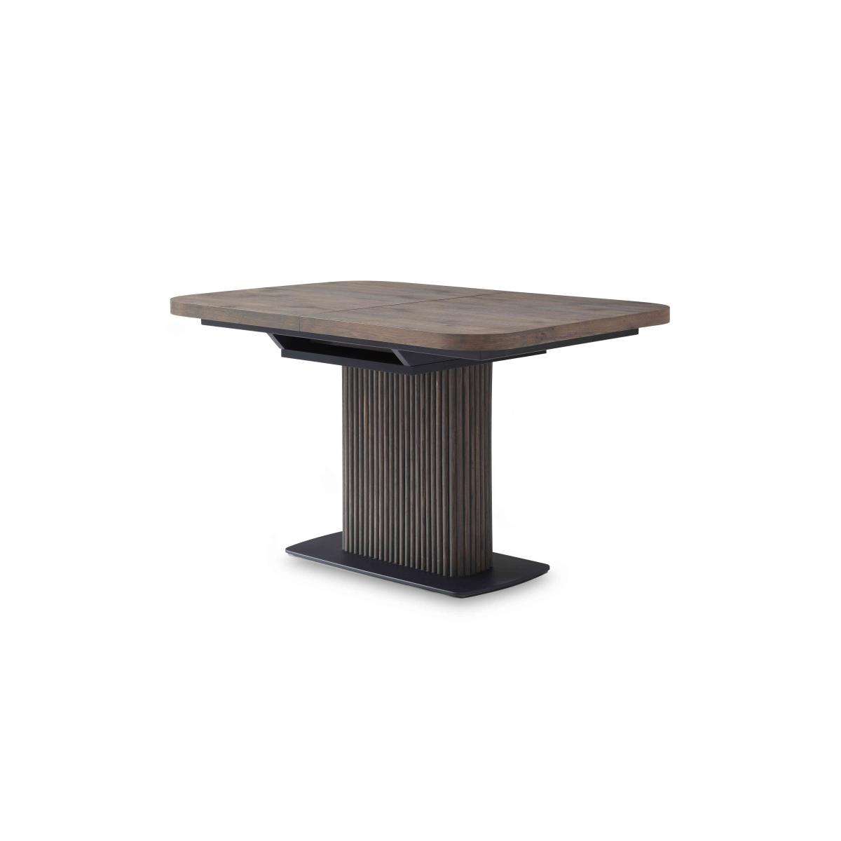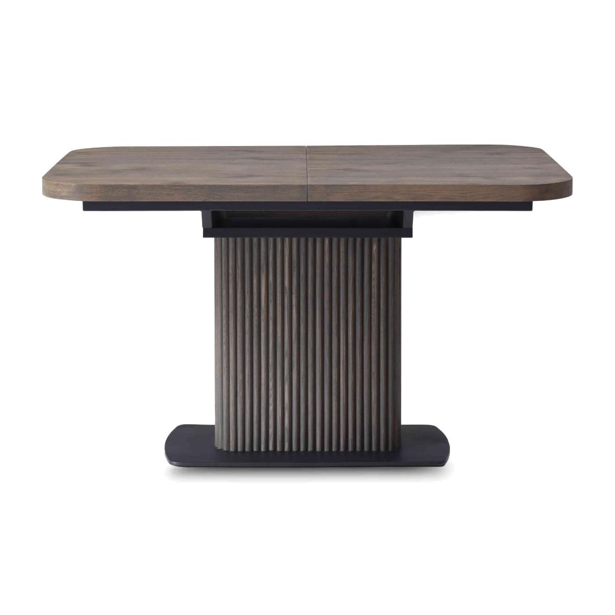 You’ll love our Jai extending dining table with its antiqued dark oak veneer finish and pedestal base. Even better, it extends to seat eight so everyone can enjoy its cool urban style. Why you'll love it Modern urban style for relaxed dining spaces. With stylish rounded corners, this dining table is well-crafted, on-trend and great value. Characterful dark oak veneer top with an antiqued finish. Easy to use butterfly mechanism extends this table in seconds. When extended, the extra leaf perfectly matches the grain of the table top. Oak pedestal base with linear grooves sits on a black metal plinth. Hardwearing and versatile – this table suits both family and formal dining spaces. Seats up 8. Handcrafted. A Furniture Village exclusive. This extending dining table is part of our Jai range. What you need to know This small extending dining table seats 6 and extends to seat 8. Every piece of veneer or solid wood has unique and natural marks, knots and colour variation. Avoid placing in direct sunlight or close to a heat source. We recommend using coasters and placemats at all times.