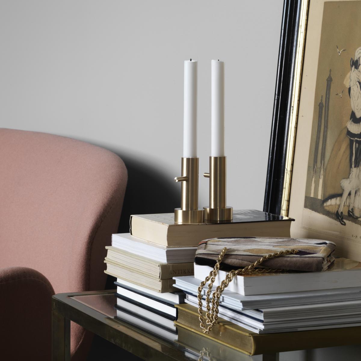 This beautiful Single candle holder by Fritz Hansen is an elegant and playful interior detail of solid brass. Designed by Jaime Hayon, its stylish form and striking material render the candle holder a great fit with many interior styles, adding a gentle lustre and graceful elegance to any room. Let the candlestick stand alone as a graceful expression of simple elegance or place it in an ensemble of other lights and candles for an eye-catching display.