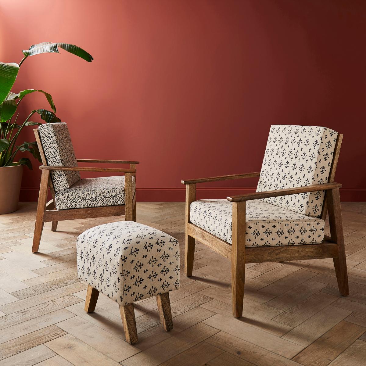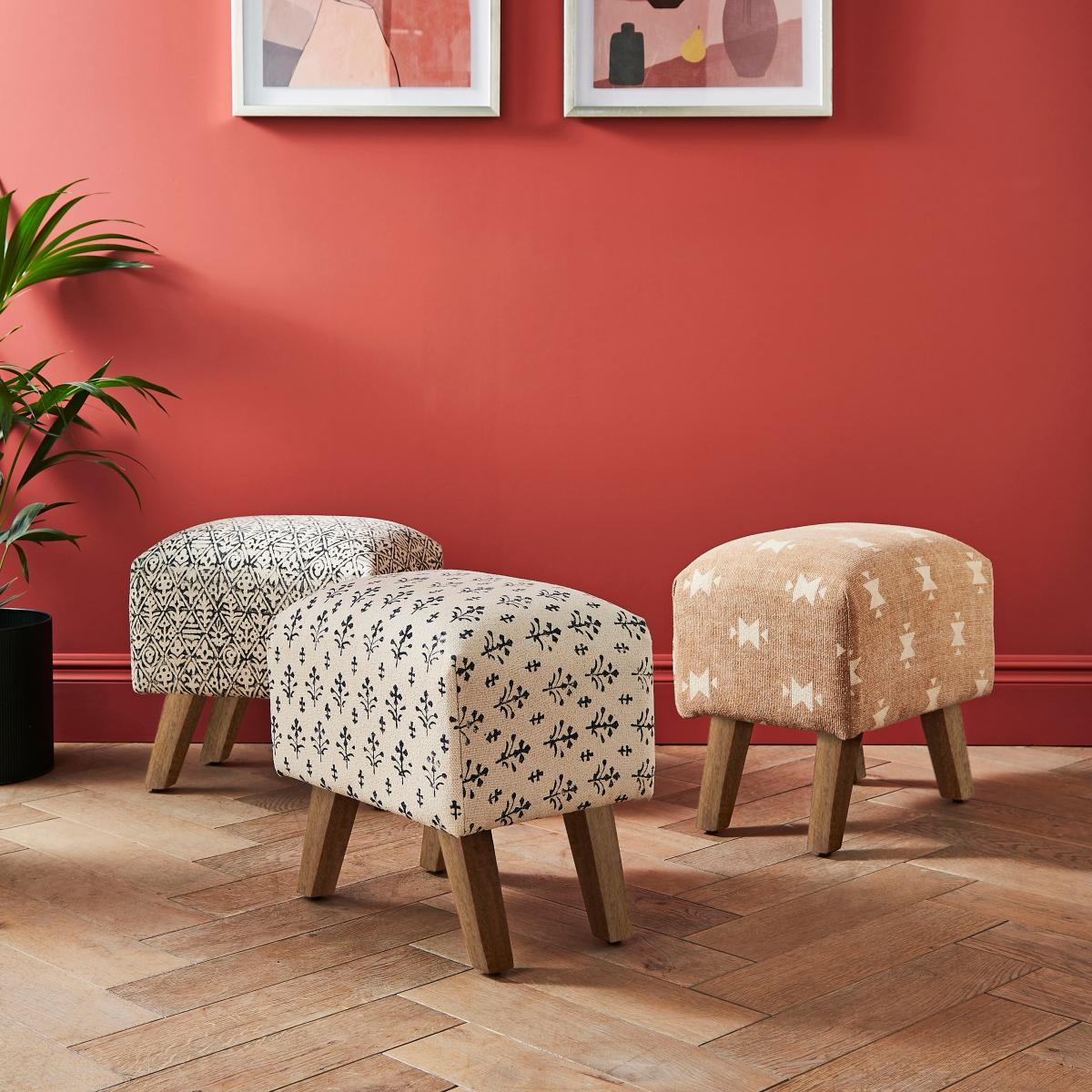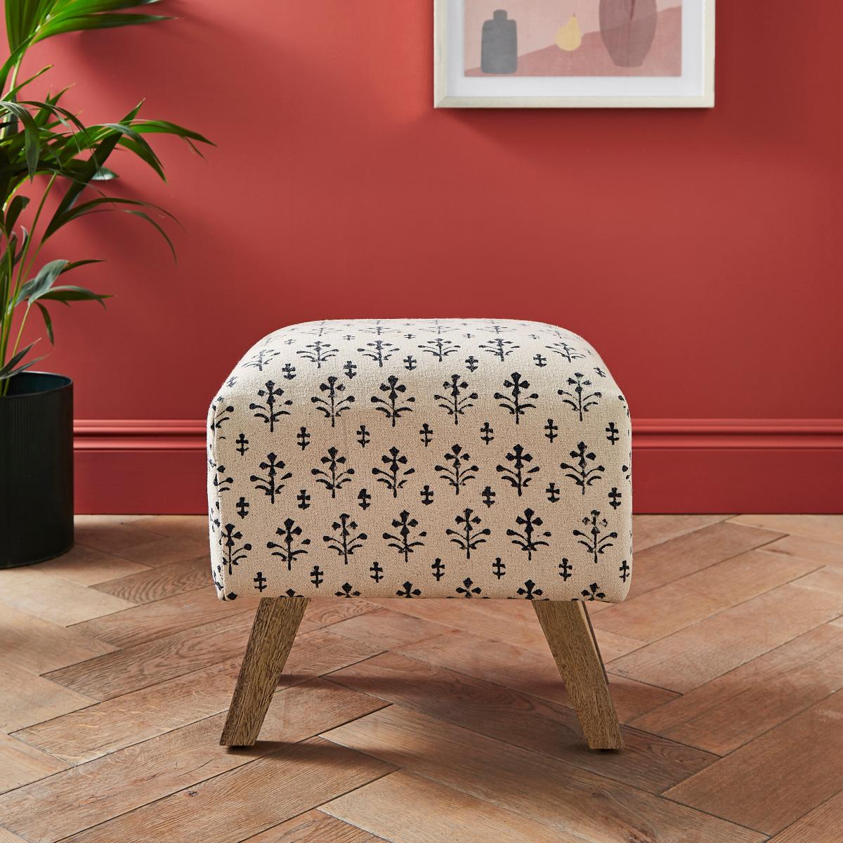 Put your feet up in style with the Jaipur Edit Stencil Print Footstool! This sturdy footstool features a 100% cotton kilm fabric cover with a trendy stencil print design, making it the perfect addition to any living room or bedroom. The mango wood construction ensures that it is built to last, while the comfortable padding provides the perfect place to rest your feet after a long day.