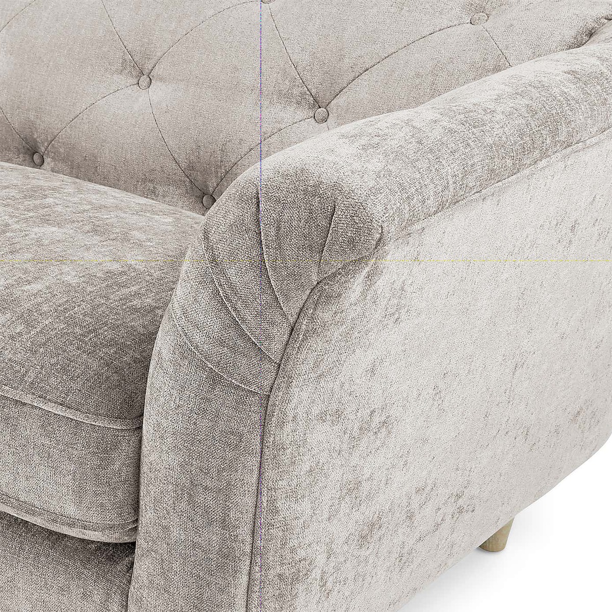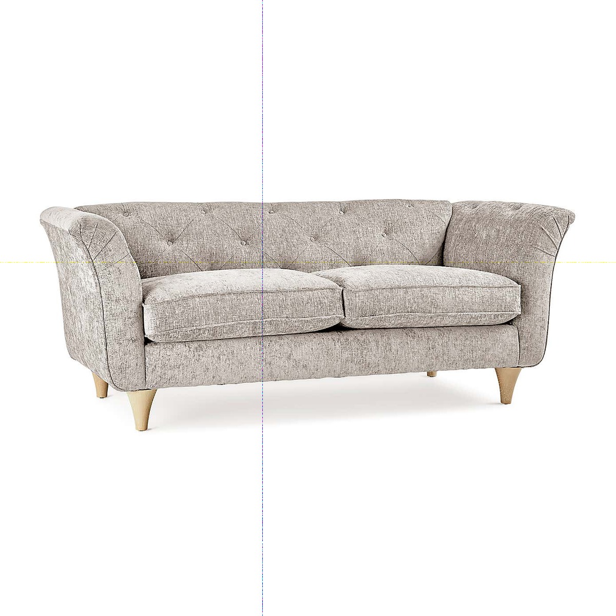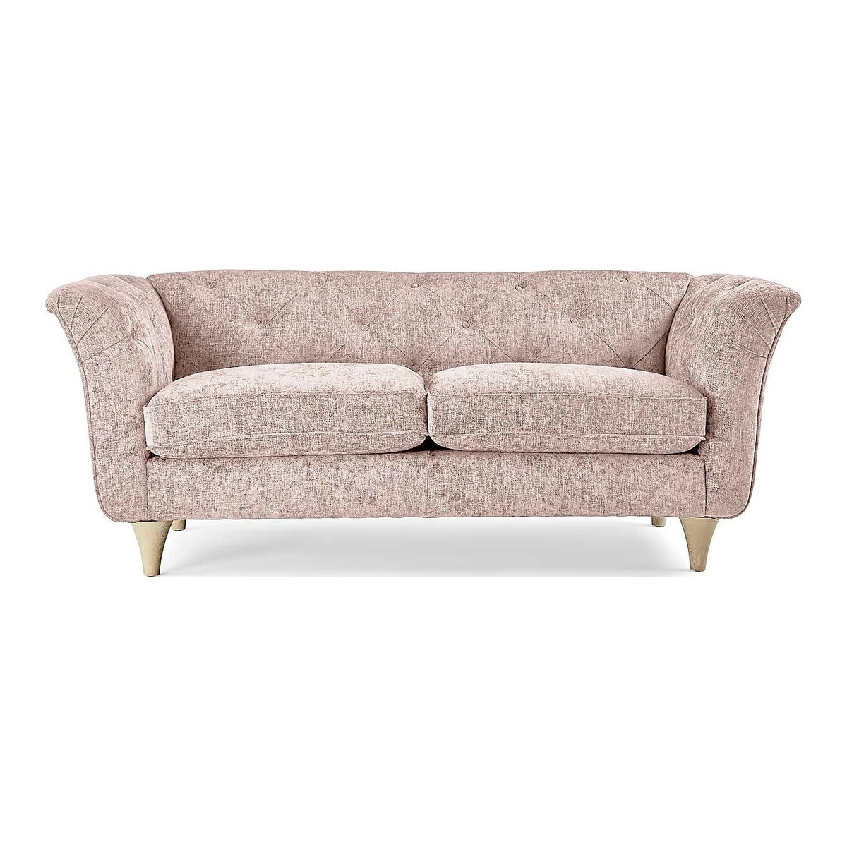 Combining premium comfort and elegant design, the Jaipur Small Sofa would make a superb addition to any living space. This sofa boasts a gorgeous silhouette with its curved, pleated arms and tapered wooden legs, coupled with delicate buttoned details on the backrest and arms. The seat cushions feature a soft reflex foam filling with an Ultrasilk Dacron fibre wrap, perfect for providing a comfortable and supportive sit, whilst maintaining their shape and fullness. The fixed backrest and arms also feature a foam filling, ensuring this sofa is as comfortable as it is stylish. The Jaipur is upholstered in an irresistibly soft premium chenille fabric, available in a choice of gorgeous colours. You can also pick between light and dark wood finished legs so you're sure to find something to suit your style. Our made to order Sofas are crafted with sturdy hardwood frames to ensure that they'll be able to easily handle the toil and strain of everyday life for years to come, but in case the worst should happen, we offer a 10 year upholstery frame guarantee on all our made to order sofas and chairs. To check out our handy sizing guide to help you find out if you’ll be able to get your new furniture into your home. Care Instructions: Wipe fabric regularly with a soft cloth to remove any dust. Keep upholstery out of direct sunlight to prevent discolouring and avoid using detergents or allowing the fabric to become wet as this can damage the fabric. Plump fibre filled cushions regularly to keep their shape.
