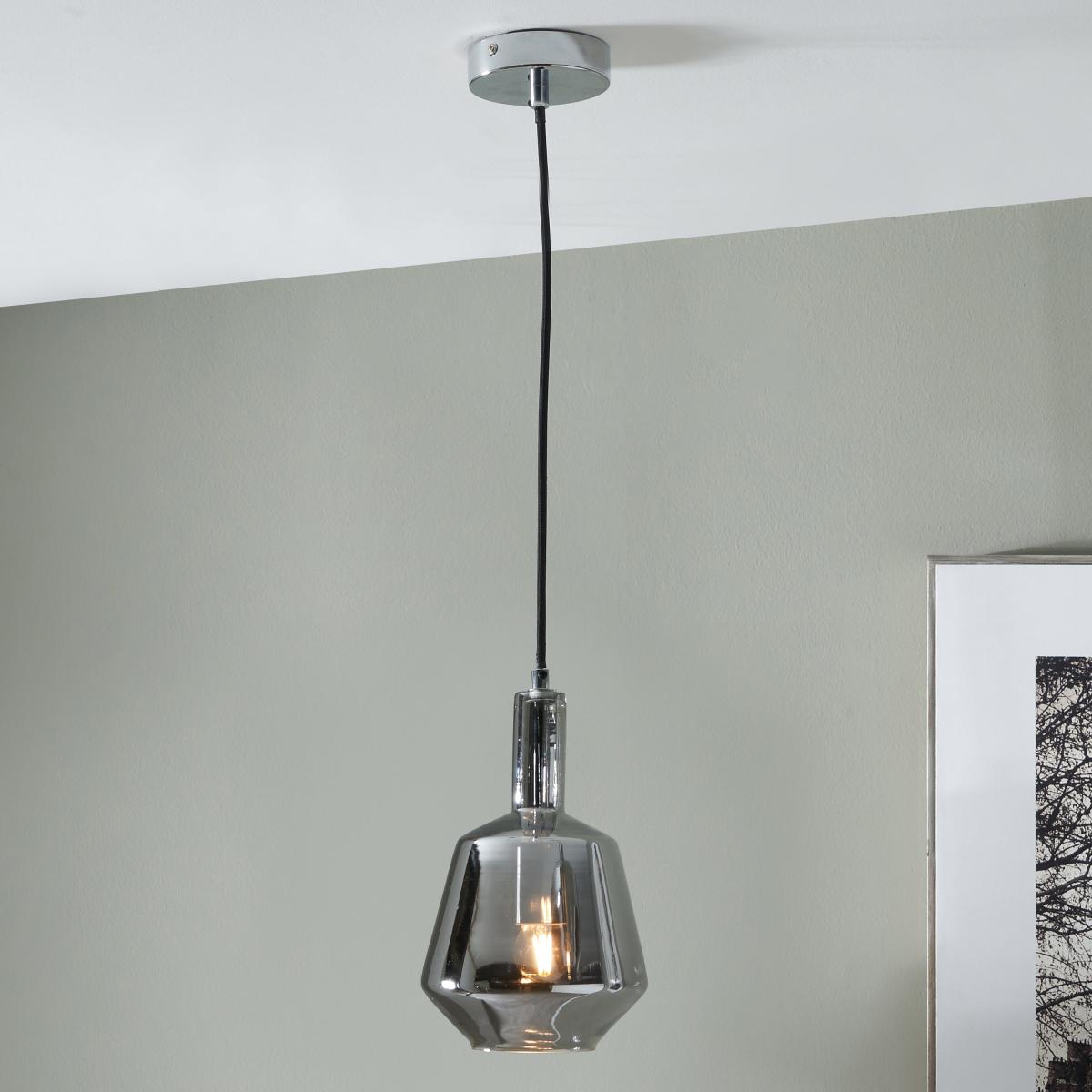 Bring this cool and contemporary light fitting to your space for a spectacular view with this smoke glass statement pendant. Offering a modern look to your ceiling, this light fitting brings light and decoration with chrome metalwork and a blown glass pendant.