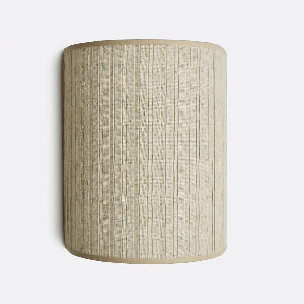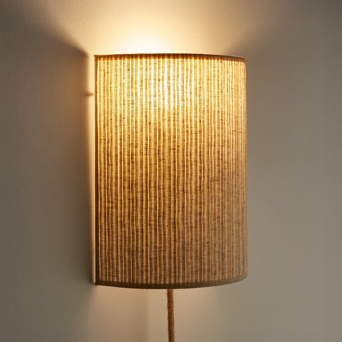 The Jakoma wall light is ideal for bringing a touch of softness to a contemporary interior. Its pleated linen lampshade filters the light and creates a warm atmosphere. Made in France. Product Details • Pleated linen shade • White epoxy steel structure • Support for E14 socket (bulb not included) • This product is sold non-electrified. Find the Baulind electric cable sold on our site. Dimensions • Width: 20cm • Height: 25cm • Depth: 10cm/4" • Made in France. Parcel Dimensions1 parcel • L26 x H26 x D16cm. 0.5kg