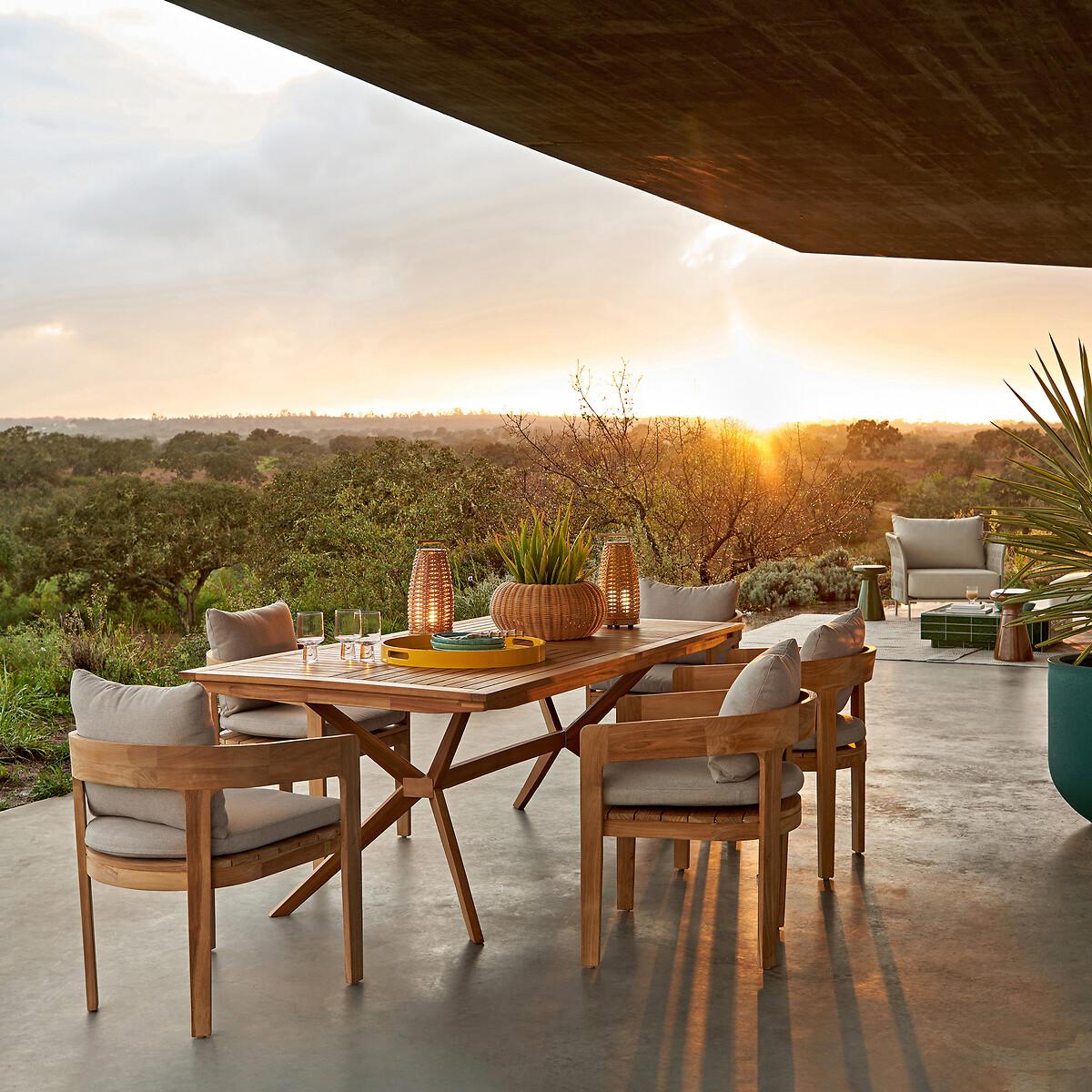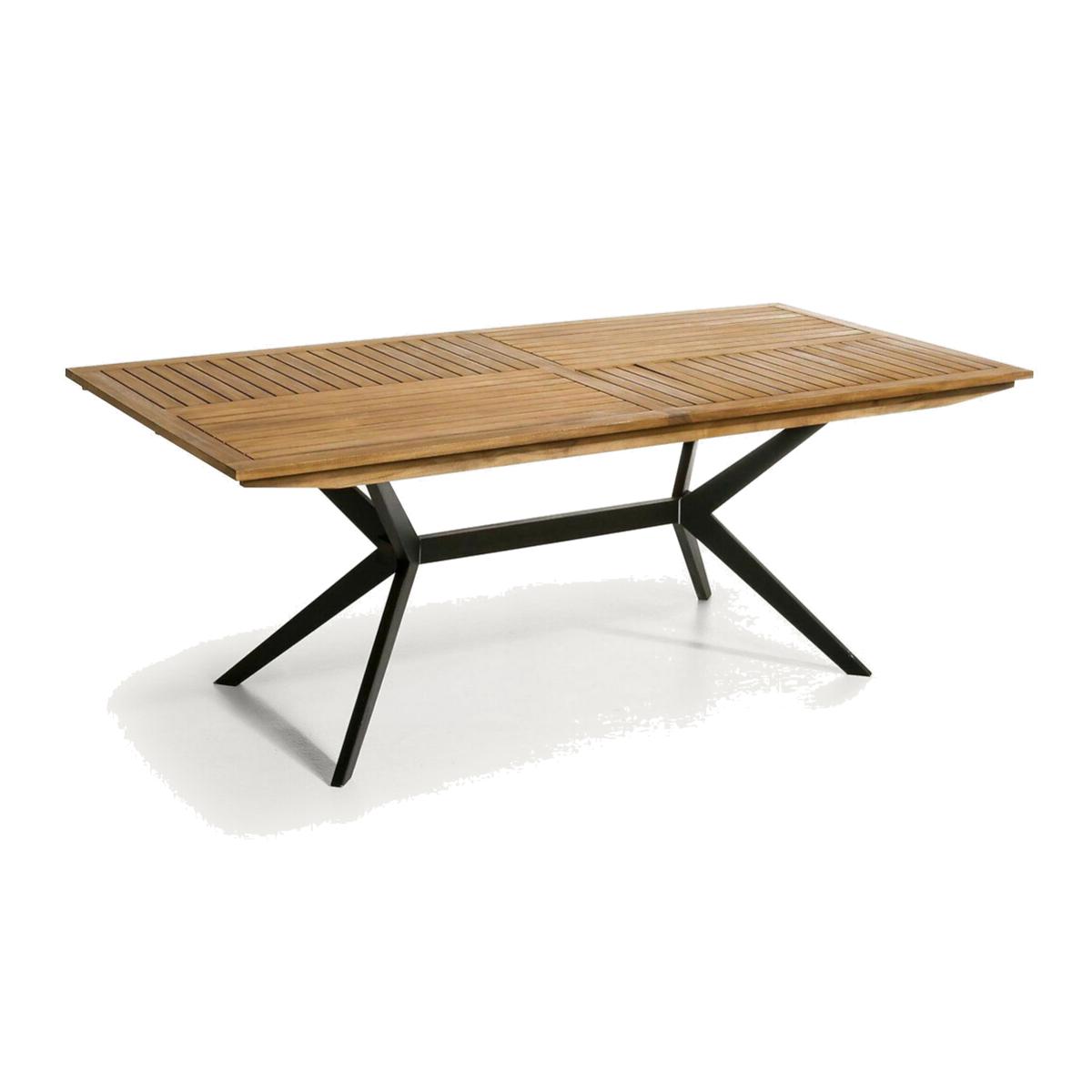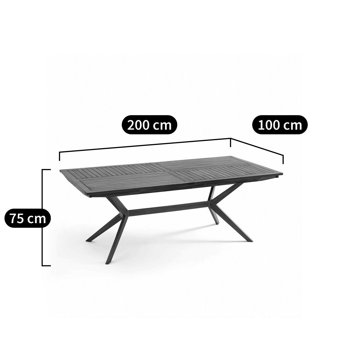 2 versions, the Jakta table brings sunshine to terraces and gardens whatever the weather ! Made of acacia, a sturdy wood. Product Details • Oiled FSC® certified acacia • Two-tone version: teak stained top, matt black legs • Teak version: tabletop and base in teak-stained wood Quality Info • Acacia is a wood that offers good mechanical properties (good resistance to insects and fungi) and is resistant to bad weather (alternation of dry and humid periods). Dimensions • Width: 200cm • Height: 75cm • Depth: 100cmDelivery:. This product is sold ready to assemble, instructions attached. Available for home delivery. Note! Please check that all access points are large enough to accommodate your delivery (doors, stairs, lifts). • WOOD FROM SUSTAINABLY MANAGED FORESTS. FSC® certified wood comes from forests that are environmentally, socially and economically well managed. Dimensions and weight of parcel1 parcel • L212 x H9 x D102.5cm. 36kg