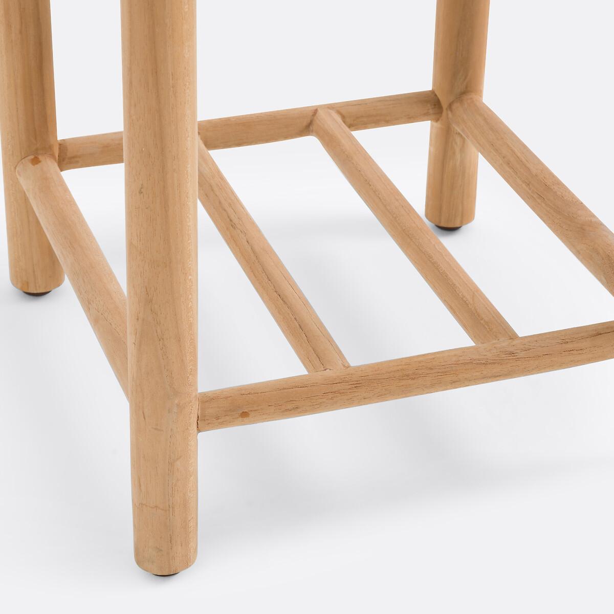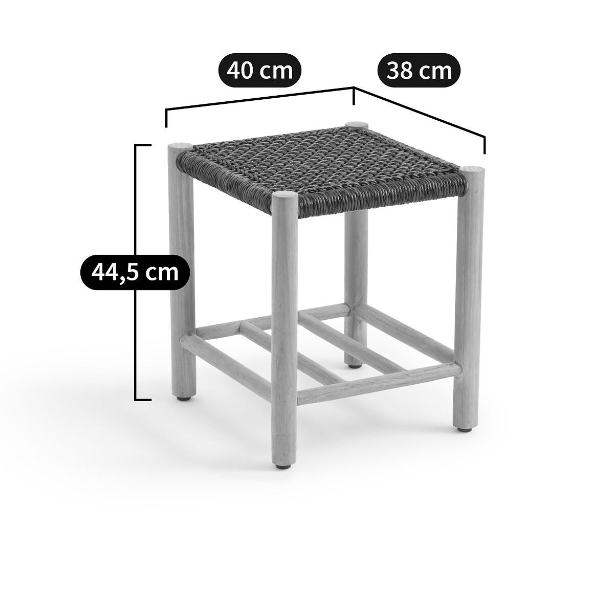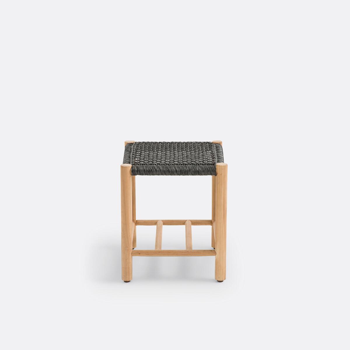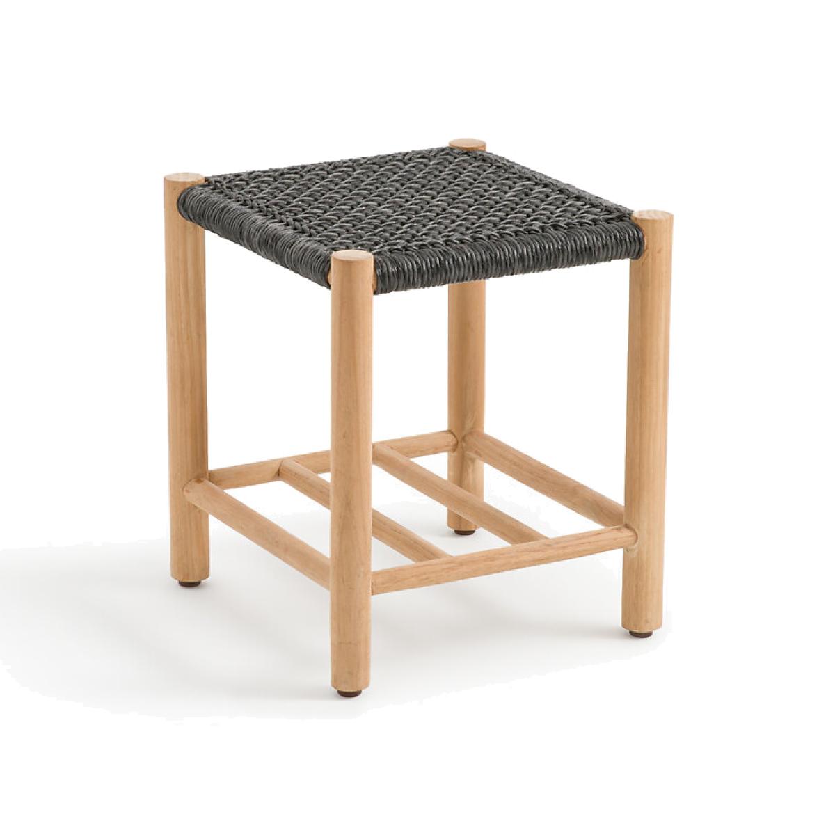 With its teak structure and woven resin seat, the Jalek stool will bring a bohemian touch to your interior. Practical, it allows you to take your shoes off in an entrance or to have an additional seat. Product Details • Teak structure, natural finish • Polyethylene woven resin seat • 4 feet with nylon and steel glidesDimensions. Overall • Width: 40cm • Height: 44.5cm • Depth: 38cm • Weight: 3kg. Usable dimensions • Height between shelf and seat: 27cm. Dimensions and weight of parcel1 parcel • L43 x H46 x D45cm. 5.8kg.