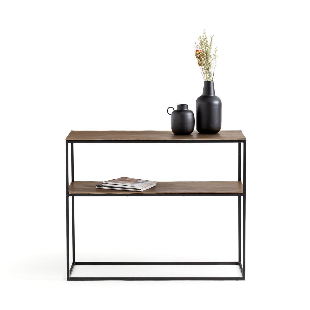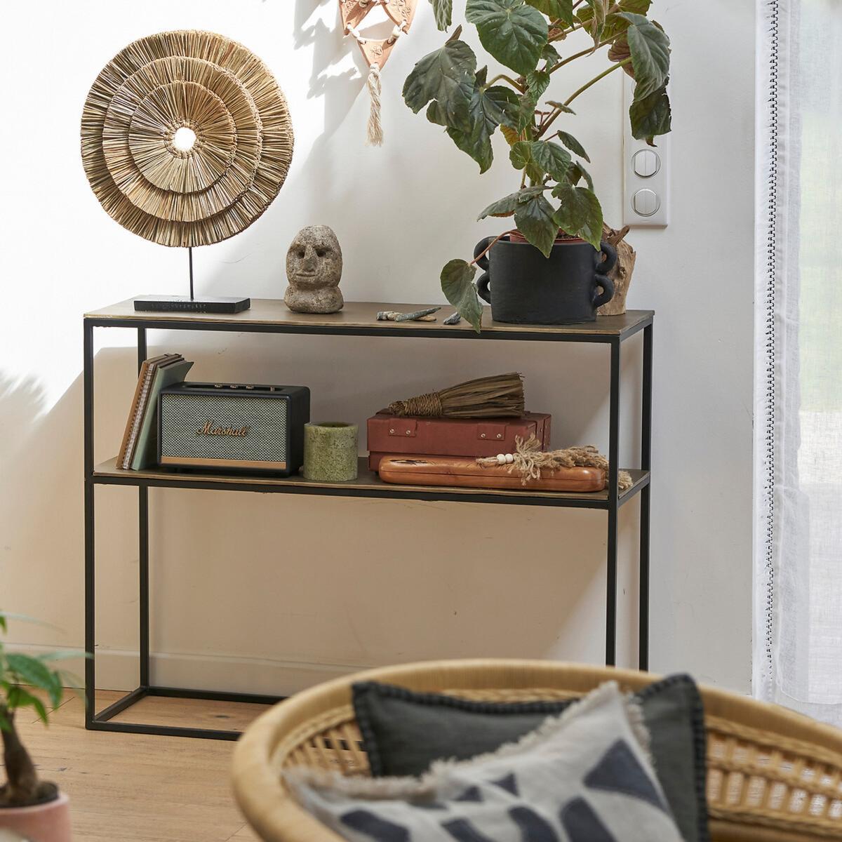 I love this little console table for its sleek, minimalist design that works well in both modern and industrial interiors. Its metal frame paired with the wooden tiers make it versatile-ideal for using in an entryway, living room, or alongside a bed as a stylish surface for decorative accessories. Practical styling tips include layering with a mix of ceramics, books, or plants for a lived-in feel, while keeping the top surface relatively uncluttered for a clean look. It’s especially useful in smaller spaces where you want to maximise functionality without sacrificing style.