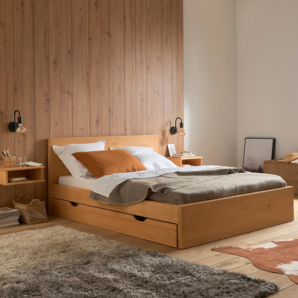 Light and bright wood and a timeless and authentic style: the Jalun solid pine bedside table matches any interior. Warm furniture to match the bed and drawer unit sold on our site. Designed by La Redoute Interiors.
