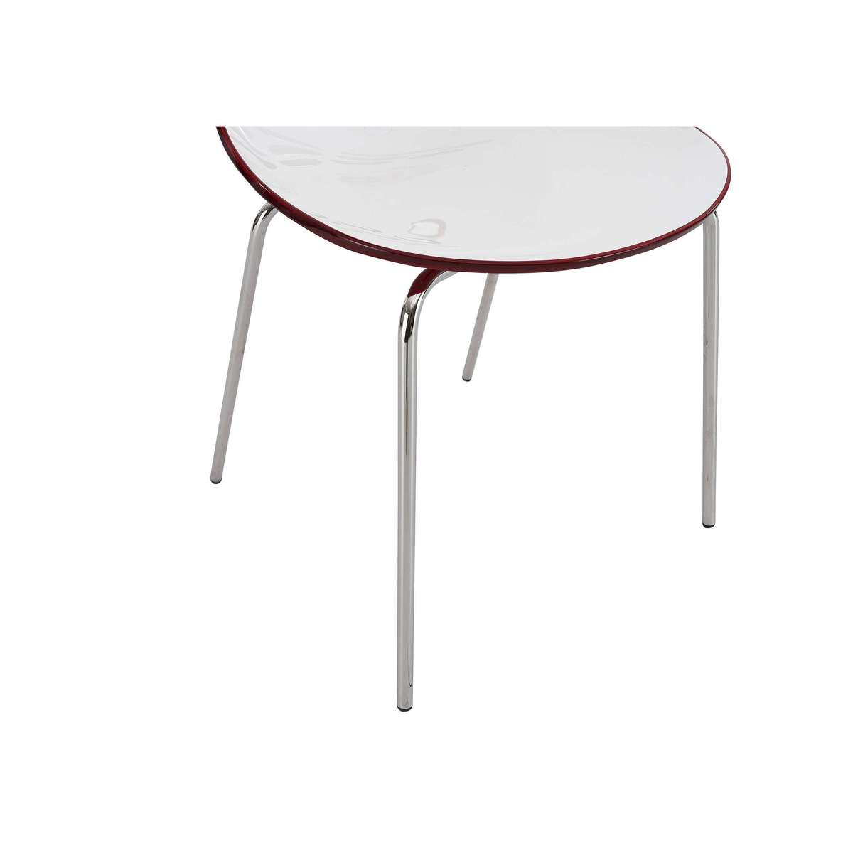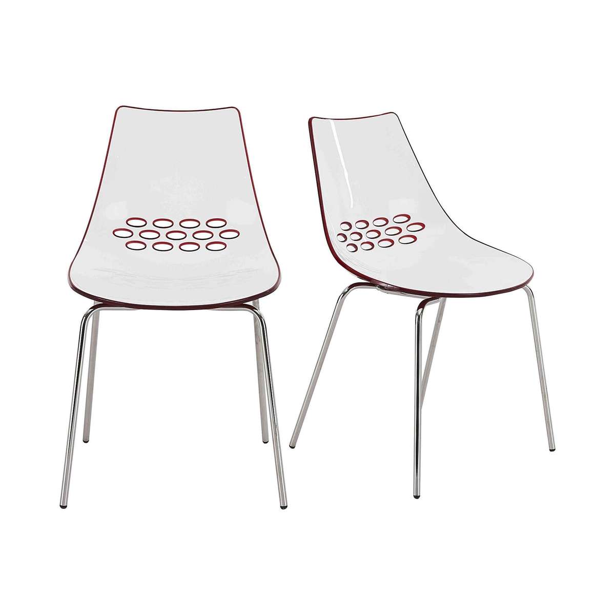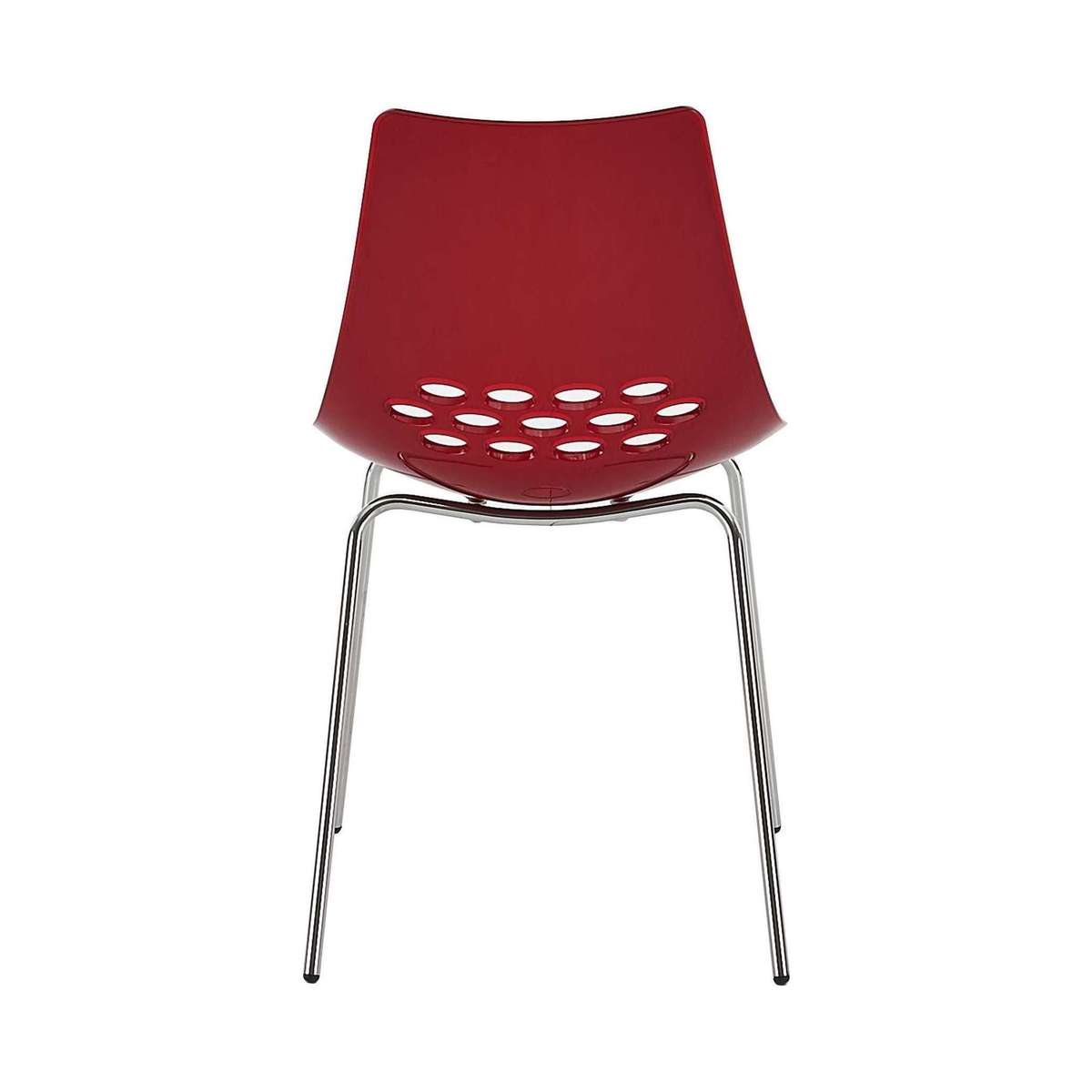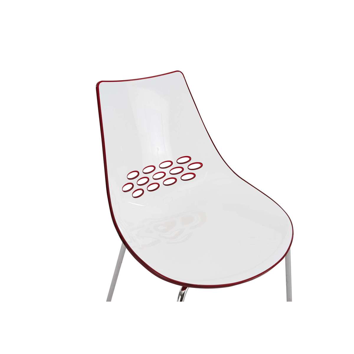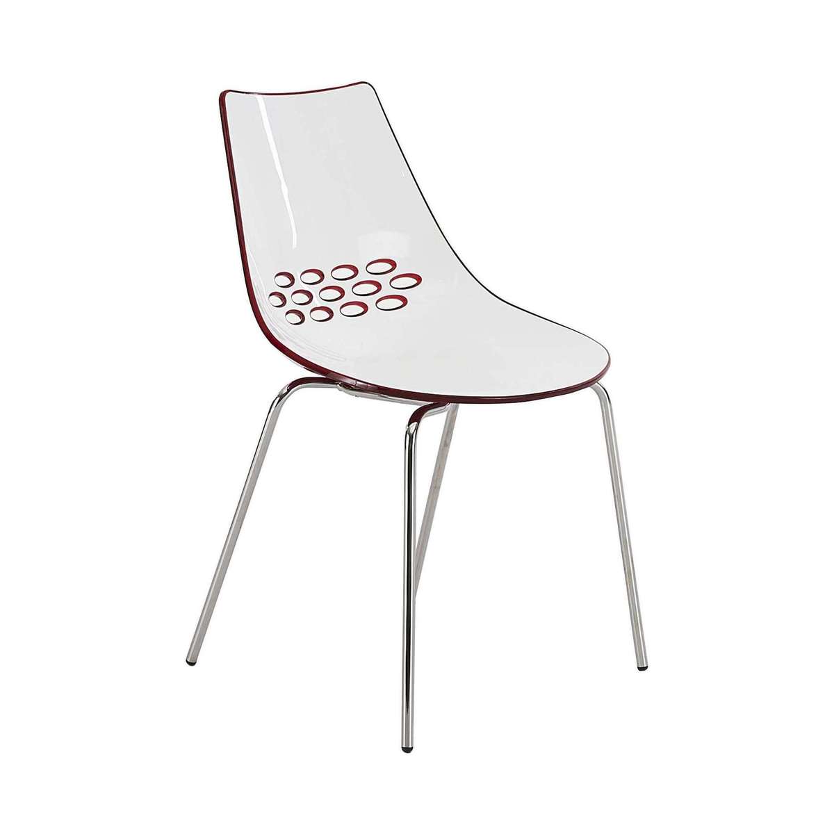 Ultra-modern high gloss dining chairs from Calligaris;High-tech double coloured layered plastic shells;Splayed steel legs in a choice of finishes including chrome;Stylish cut out detailing on the chair back;Footpads to protect the floor;White inner shells with red, black, transparent or nougat backs;Part of the Private Label collection from Calligaris