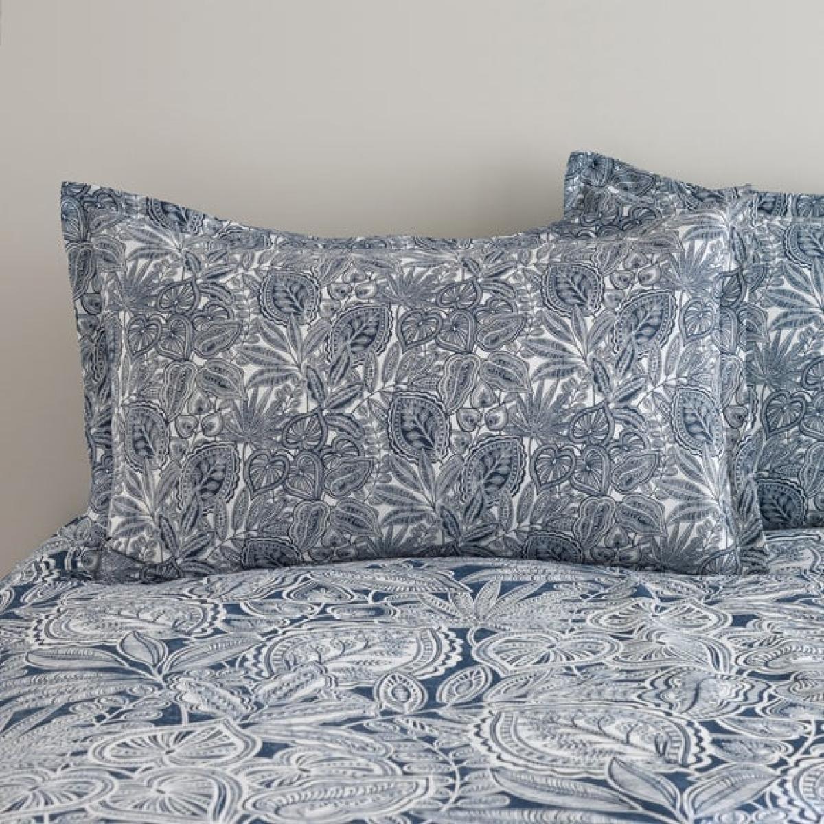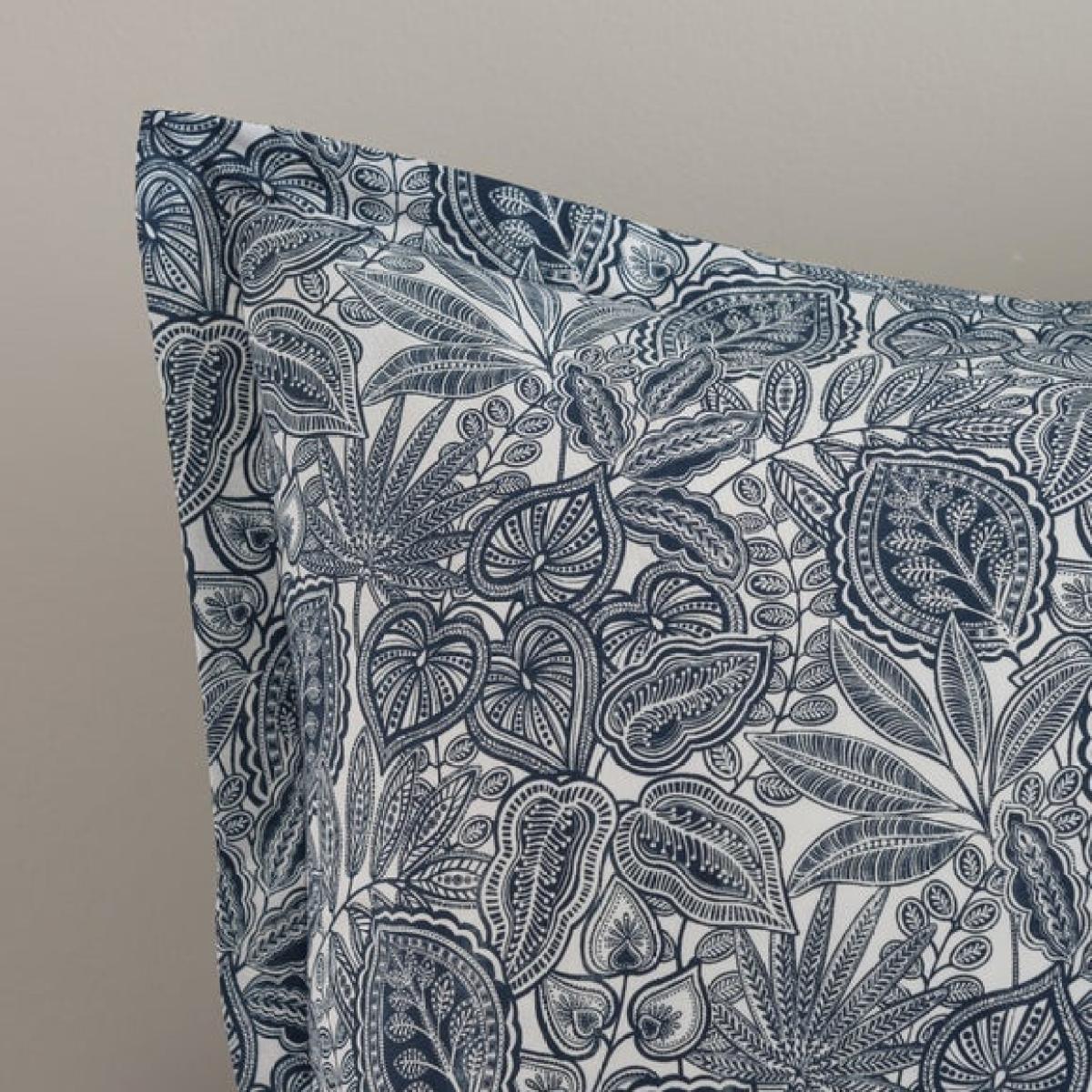 * Decorative Leaf Design * Oxford Styled Pillowcase * Easy-Care Recycled Polyester/Cotton Blend * Coordinating Bedding Available Featuring a decorative leaf design in a navy colourway, the Jama Oxford Pillowcase is perfect to inject personality and charm to your sleep space. Fully reversible and crafted from an easy-care polyester/cotton blend.