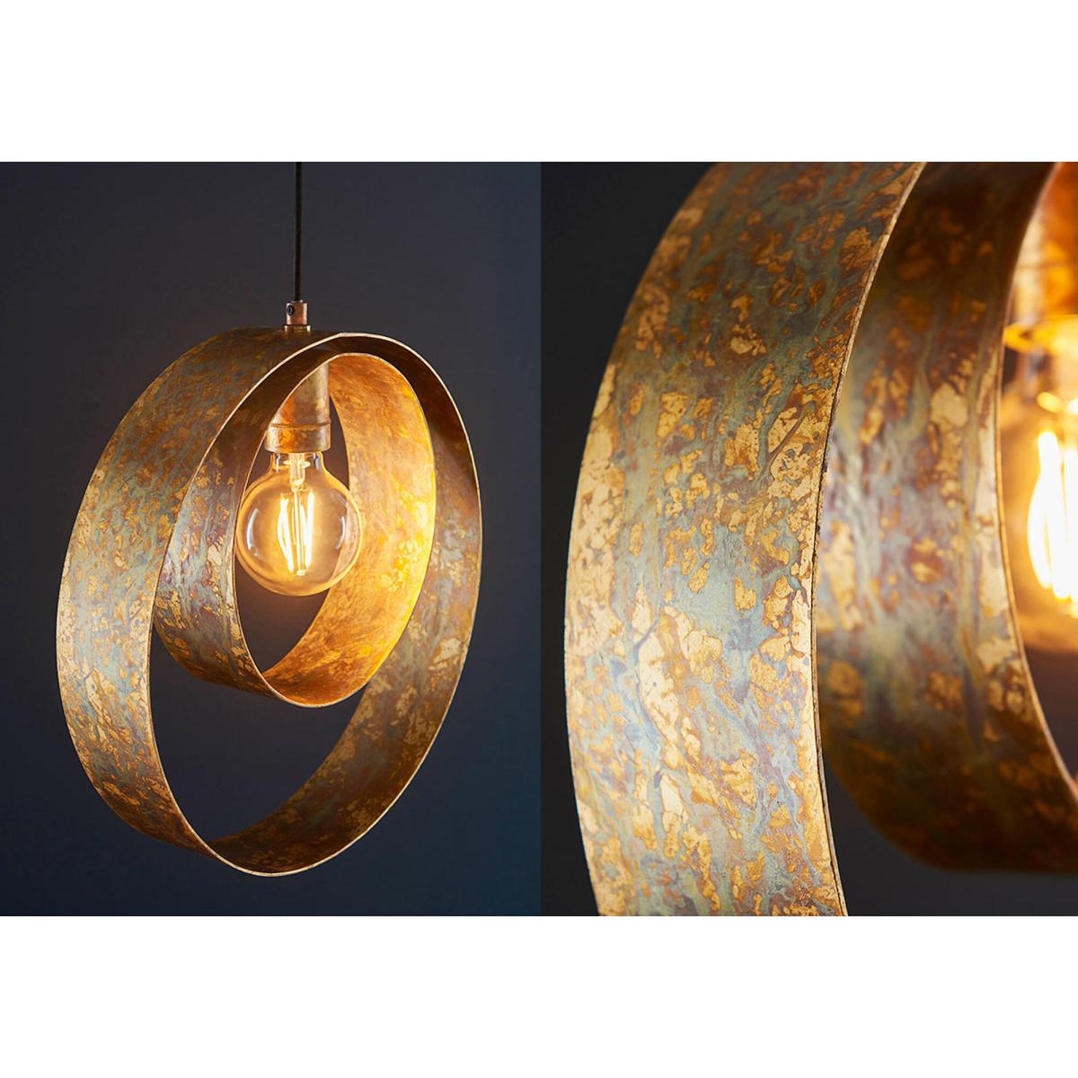 Make an impact with the industrial charm of the James pendant. Thoroughly considered to not only create artistic form in a literal sense but also to create a unique lighting effect, the James ceiling pendants are an eye-catching choice. Despite its industrial inspiration, there is nothing heavy about this design. Slender plates of metal are curled into circular forms and finished in a remarkably distinctive patina, balancing sophistication and flair. This ceiling pendant, finished in a rich gold patina, is sure to add an element of interest to your home while complementing a diverse range of styles.