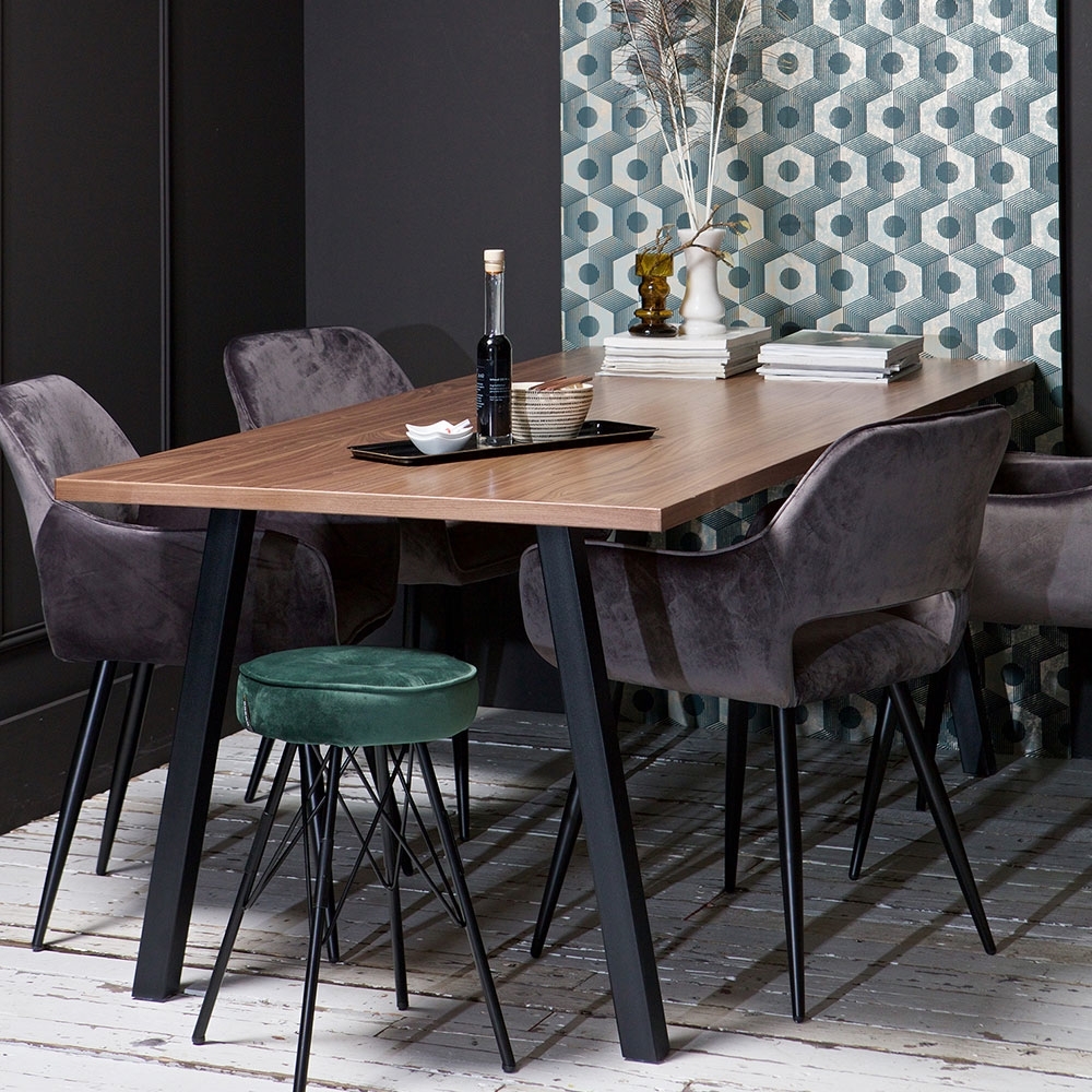 Is your dining room in need of a revamp? Well look no further than the James Dining Table from Woood, its simple style will be the perfect starting point. With a stunning walnut veneer tabletop and slim black metal legs, this sturdy table will be happy to host those dinner parties, family roasts or that long game of monopoly. Whether used in the kitchen or the dining room, gathering everyone around this beauty will be easy. With other items available in the James range, why not create a coordinating theme throughout your home!.