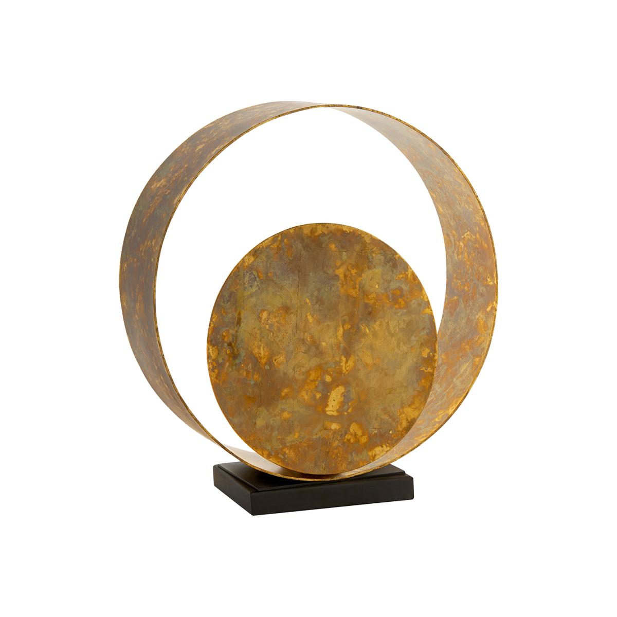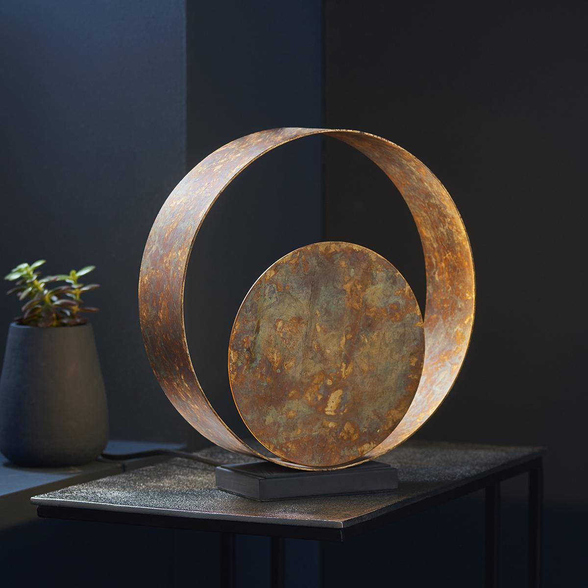 I love this lamp for its distinctive modern aesthetic and the warm, aged finish of the gold patina which adds a touch of vintage charm. It works particularly well in contemporary interiors with clean lines, as a statement piece on a side table or a console. For styling tips, pair it with other metallic accents or textured materials like velvet or wood to create a layered, curated look. Its sculptural form also makes it versatile enough to sit comfortably in eclectic or minimalist spaces. Just remember to keep the surrounding decor simple, so the lamp remains a focal point.