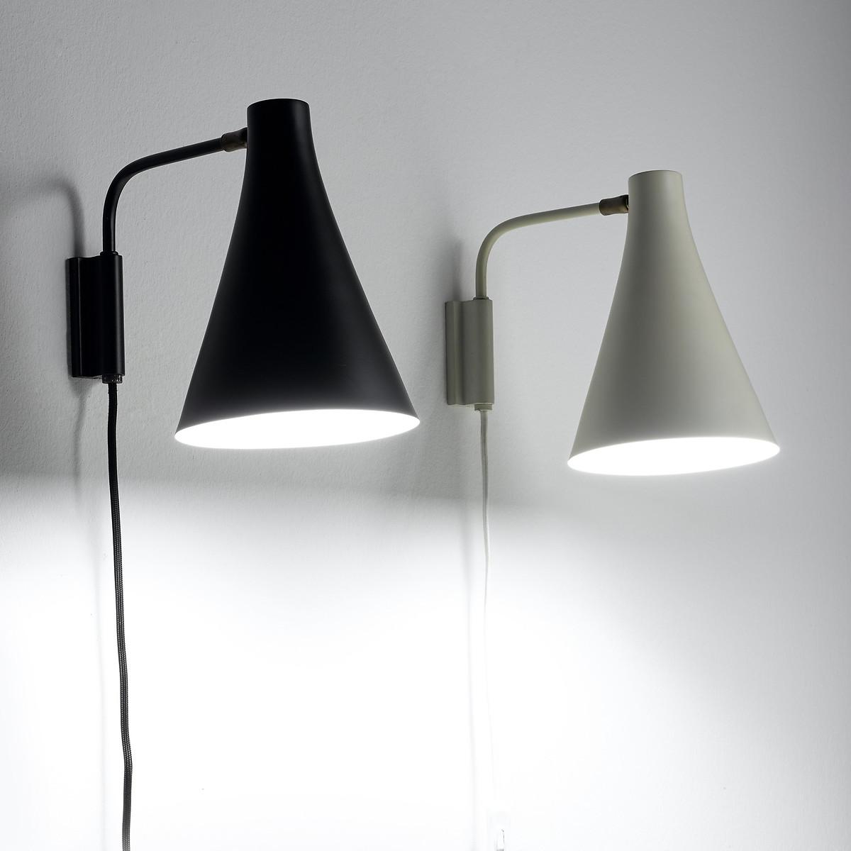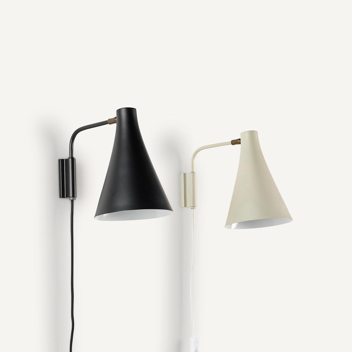 Jameson Wall Light. Elegance of a shaped black metal base punctuated with stylish brass toned accents. Product Details • In black steel and brass or greige and brass • Epoxy finish • Adjustable lampshade. • Fabric cable in black or white • E14 socket for 6W max LED bulb (not included)Dimensions • L29 x H17 x D24cm • Cable length: 200cm Parcel Dimensions • 29 x 21 x 35.3cm • 1.3kg