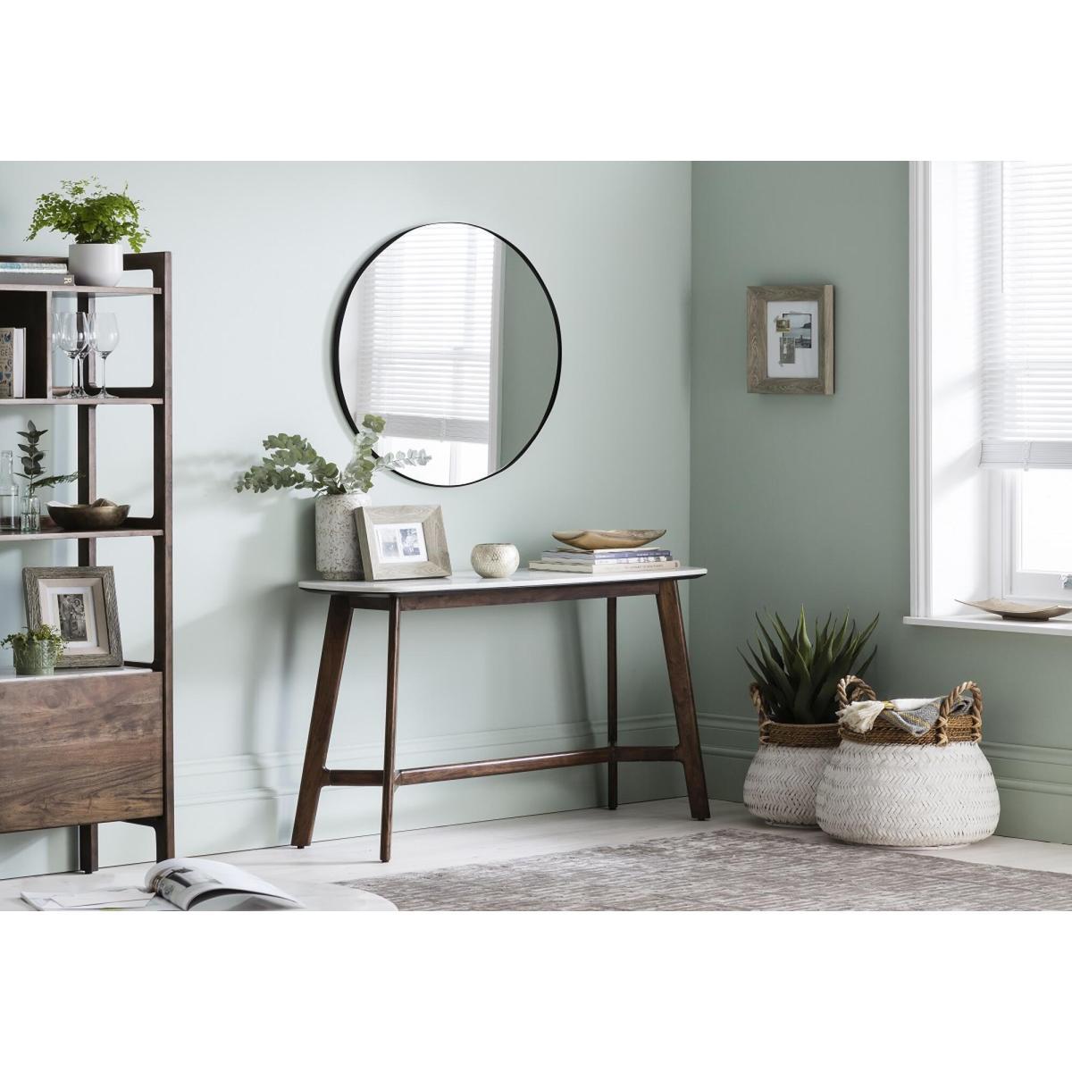 The Jameson round wall mirror in black is a sleek, versatile piece that works well in a variety of interiors, from modern minimalist spaces to more eclectic setups. I love how its simple circular shape adds a touch of contemporary style without overwhelming the room. It’s perfect for creating the illusion of space in smaller rooms or hallways, and its black frame adds a subtle contrast in lighter colour schemes or complements darker accents. For styling tips, position it above a console table or mantel for a focal point, or pair it with other geometric accessories for a cohesive look. It’s a practical choice that combines functionality with an understated design aesthetic.