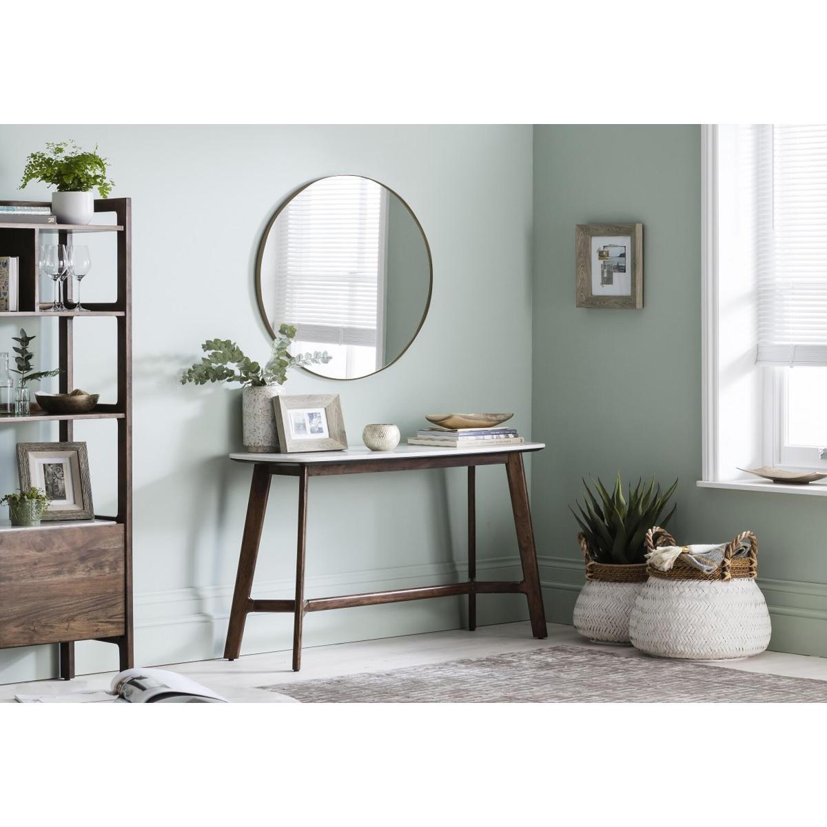 I love the Jameson Round Wall Mirror for its clean, minimalist design and subtle touch of colour with the pale gold finish. It works particularly well in contemporary or pared-back interiors, adding visual interest without overwhelming the space. Practical styling tips include placing it above a console table or dresser to create a focal point, or using multiples for a gallery wall effect. Its round shape balances well with angular furniture, and it can also serve as a practical mirror in entryways or bedrooms, enhancing the sense of space and light. The finish adds a hint of luxe, making it versatile enough to suit both modern and classic schemes.