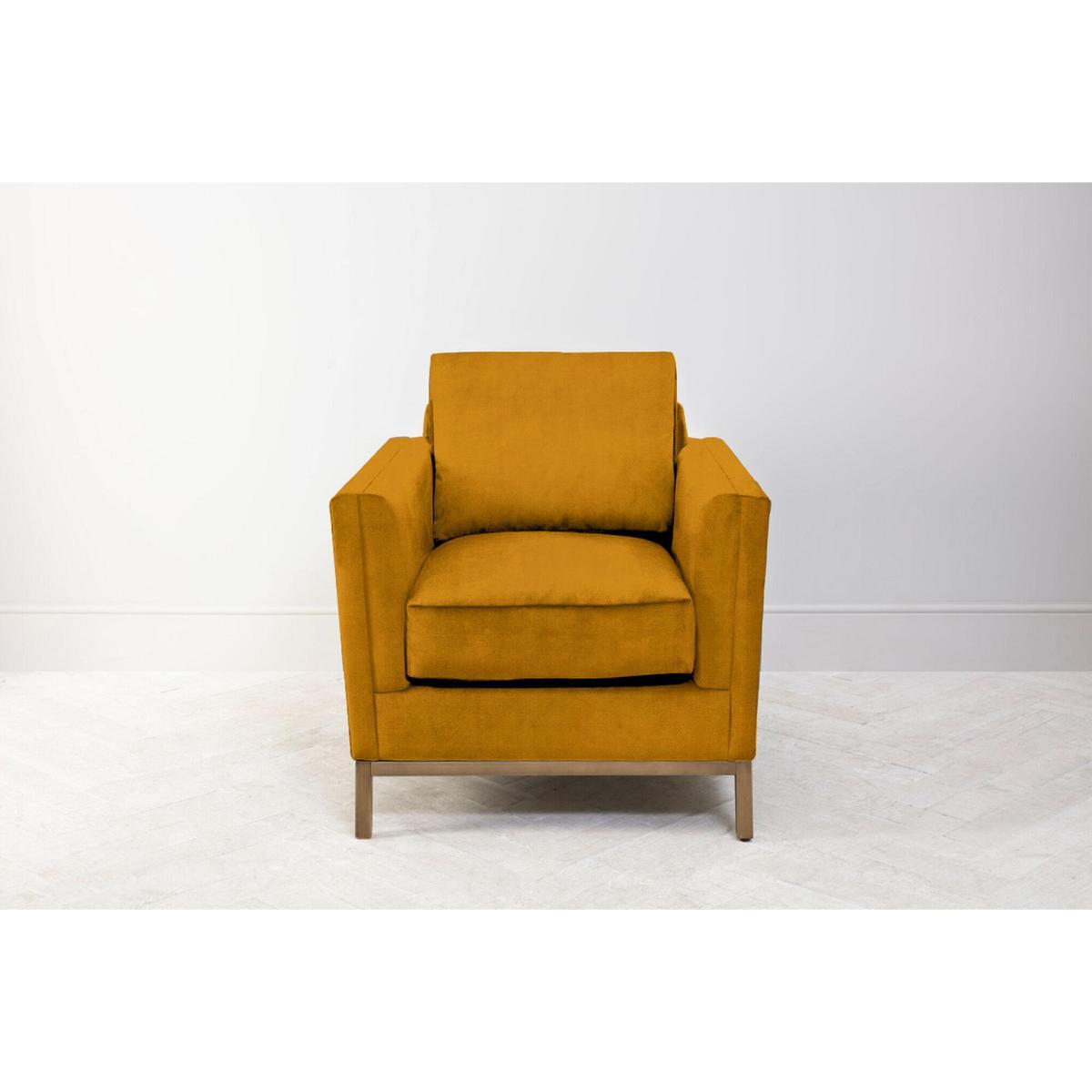 I love this armchair for its bold medallion gold fabric, which instantly adds a touch of luxe to any space. It works particularly well in contemporary or eclectic interiors, where it can serve as a statement piece, but it’s versatile enough to suit mid-century modern schemes too. Practical styling tips include pairing it with soft, neutral accessories to let the fabric stand out, or contrasting it with darker tones for a more dramatic look. Its compact shape makes it ideal for reading corners or small living rooms, while the sturdy wooden legs give it a grounded, timeless appeal.