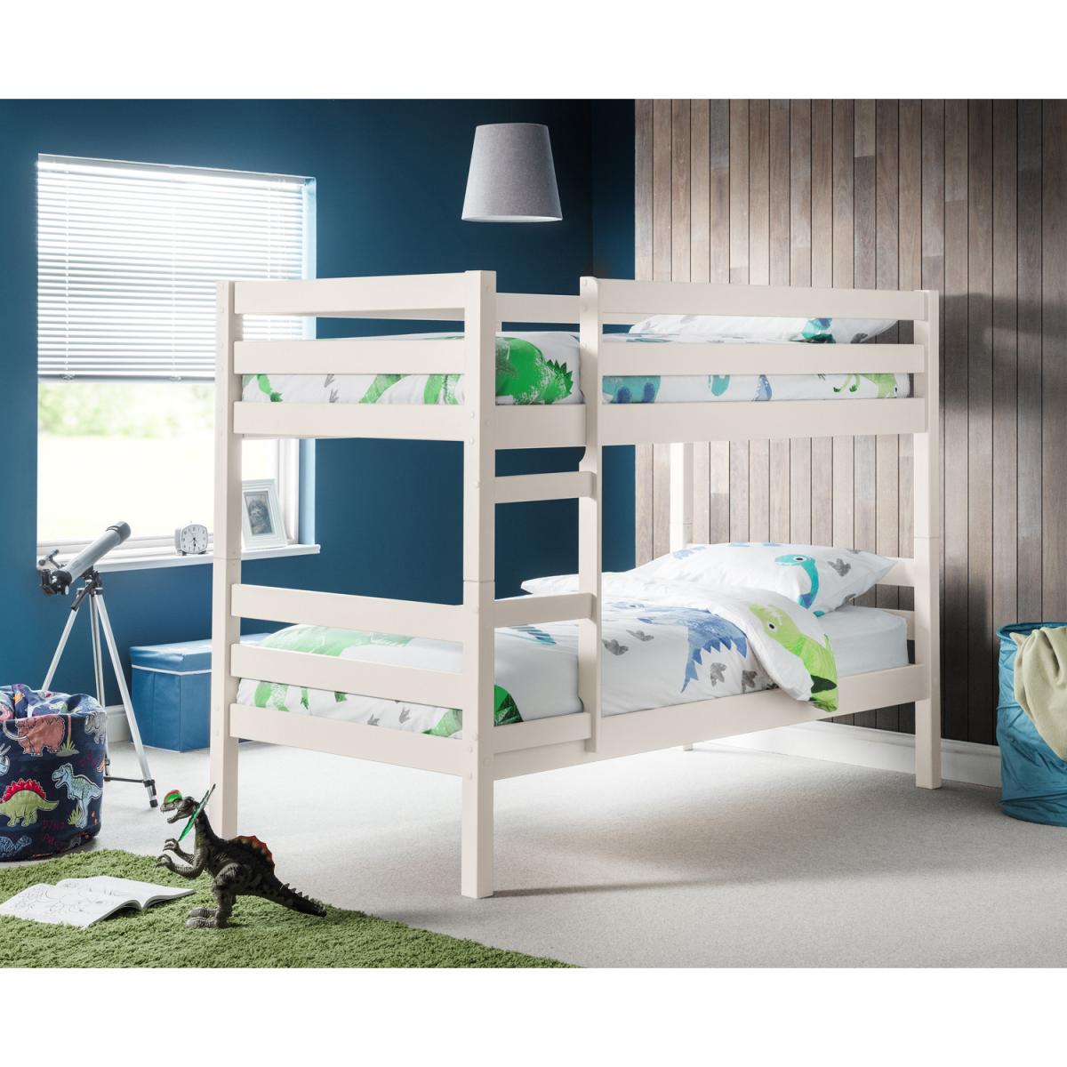 I’m a fan of this surf white bunk for its simple, sturdy design and crisp finish - it slots straight into coastal, Scandi or modern-minimal kids’ rooms. The clean lines mean you can layer in colour easily: try vibrant throw cushions, patterned bedding or a pastel wall behind to make it pop without overwhelming the space. For a practical setup, add slim under-bed storage boxes to keep toys tidy, and consider a small bedside shelf on the lower bunk for a light or bedtime books. A couple of fairy-light strands or a lightweight canopy can make it feel cosier, while sticking to damp-wipe fabrics helps with everyday spills and scuffs.