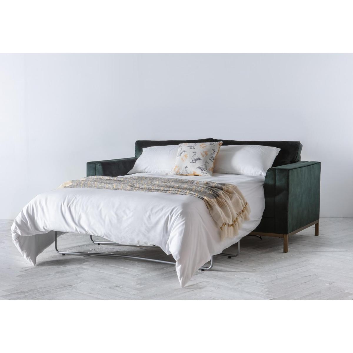 Make room for the Jamie sofa bed, a design that you could see featured in a retro, utterly stylish scene of Mad Men. The Jamie is a delight to the eye that combines a slim, robust metal base with a spacious body with high arms and deep seat. Soft cushions across the back and seat make the Jamie a delightful place to sink into after a long day. Available in over a hundred different fabrics, this design is also extremely convenient, as it transforms into a comfortable bed with a sprung mattress and simplified mechanism inside. Add the Jamie to a modern living room next to a metallic floor lamp for that extra oomph of lavish style.