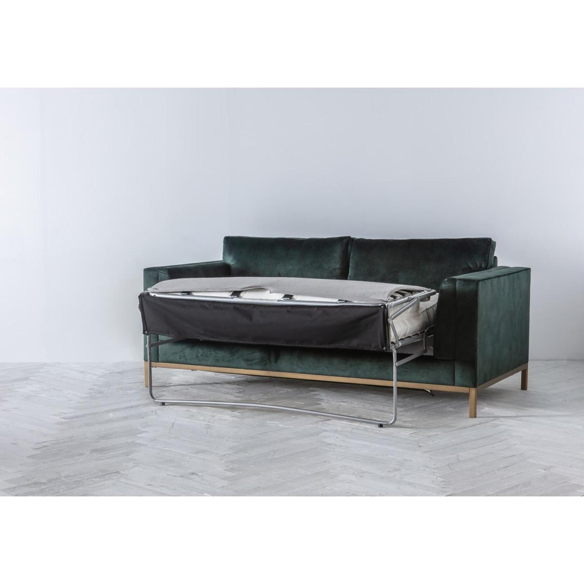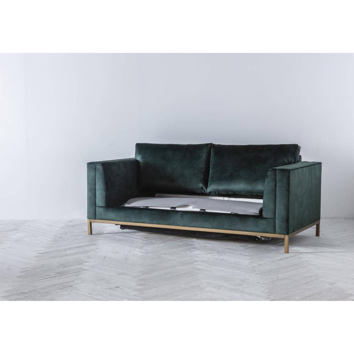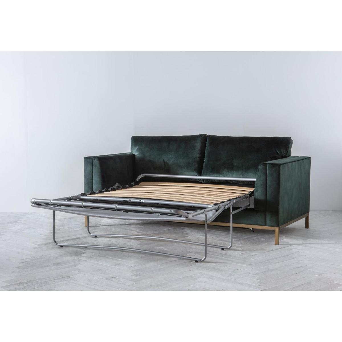 Make room for the Jamie sofa bed, a design that you could see featured in a retro, utterly stylish scene of Mad Men. The Jamie is a delight to the eye that combines a slim, robust metal base with a spacious body with high arms and deep seat. Soft cushions across the back and seat make the Jamie a delightful place to sink into after a long day. Available in over a hundred different fabrics, this design is also extremely convenient, as it transforms into a comfortable bed with a sprung mattress and simplified mechanism inside. Add the Jamie to a modern living room next to a metallic floor lamp for that extra oomph of lavish style.