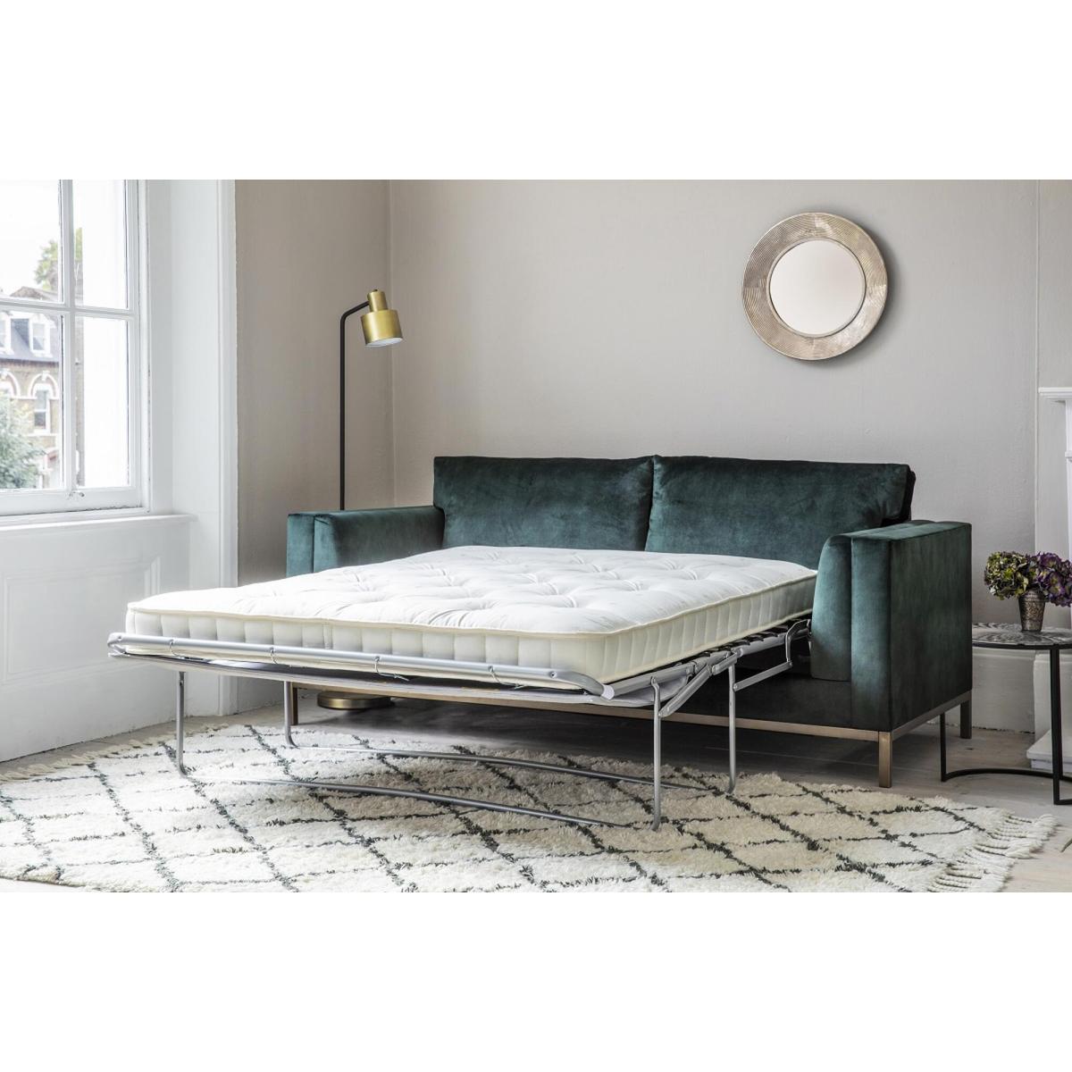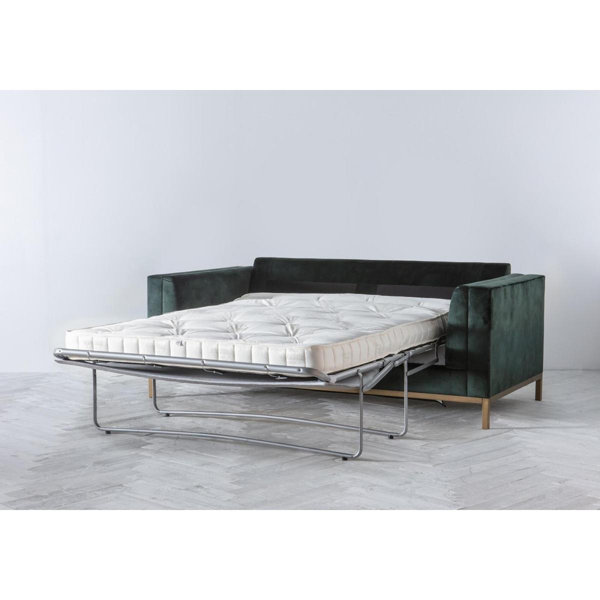 Make room for the Jamie sofa bed, a design that you could see featured in a retro, utterly stylish scene of Mad Men. The Jamie is a delight to the eye that combines a slim, robust metal base with a spacious body with high arms and deep seat. Soft cushions across the back and seat make the Jamie a delightful place to sink into after a long day. Available in over a hundred different fabrics, this design is also extremely convenient, as it transforms into a comfortable bed with a sprung mattress and simplified mechanism inside. Add the Jamie to a modern living room next to a metallic floor lamp for that extra oomph of lavish style.