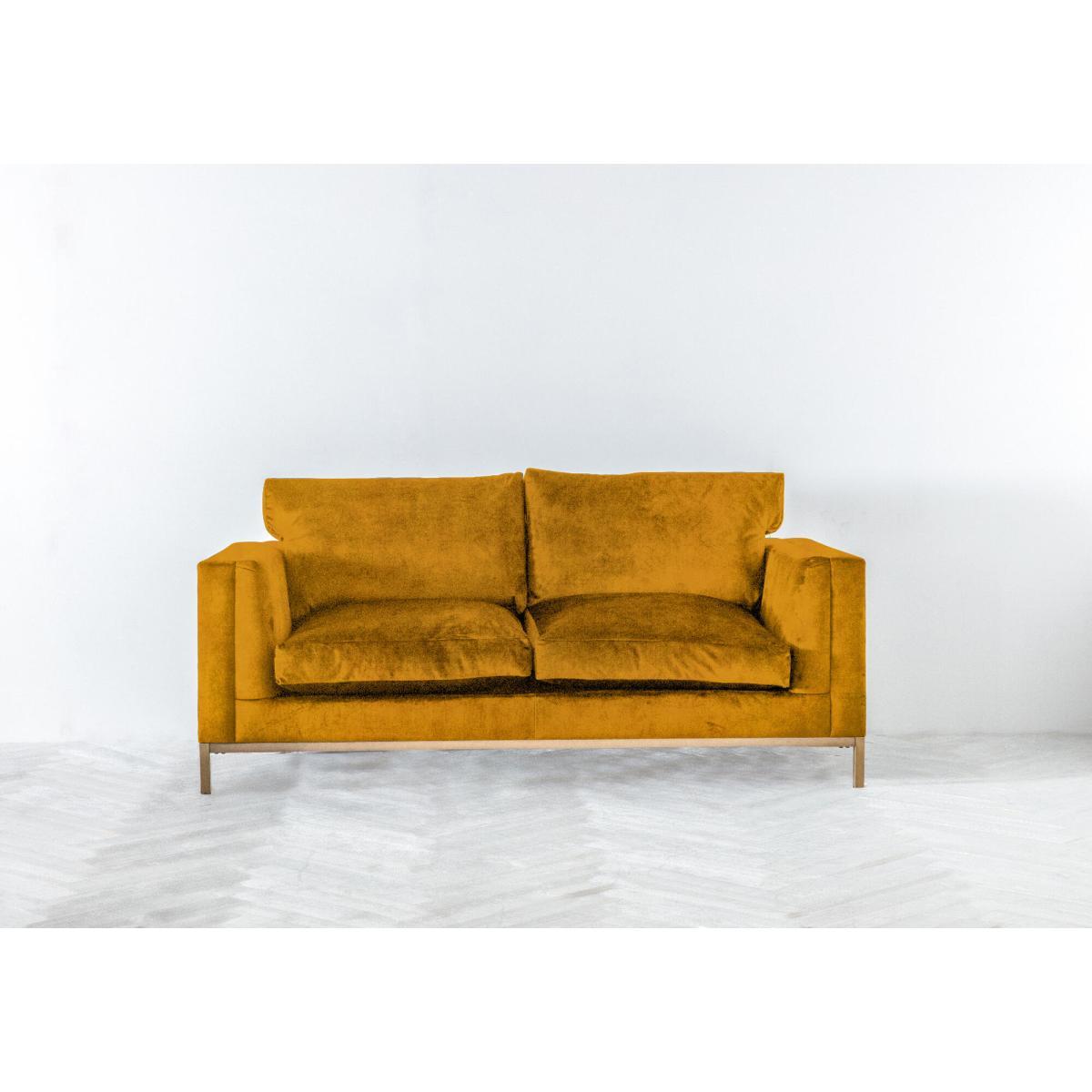 Discover the Jamie three-seater sofa, a design with an utterly stylish retro flair. In this compact sofa, upholstery and a golden metal base blend beautifully for a sophisticated design, with a deeply-cushioned seat and angled arms. Available in over a hundred fabrics to choose from, each Jamie is made to order exclusively for you, and as such, it's the perfect piece to sink into after a long day while giving the room a personal look.